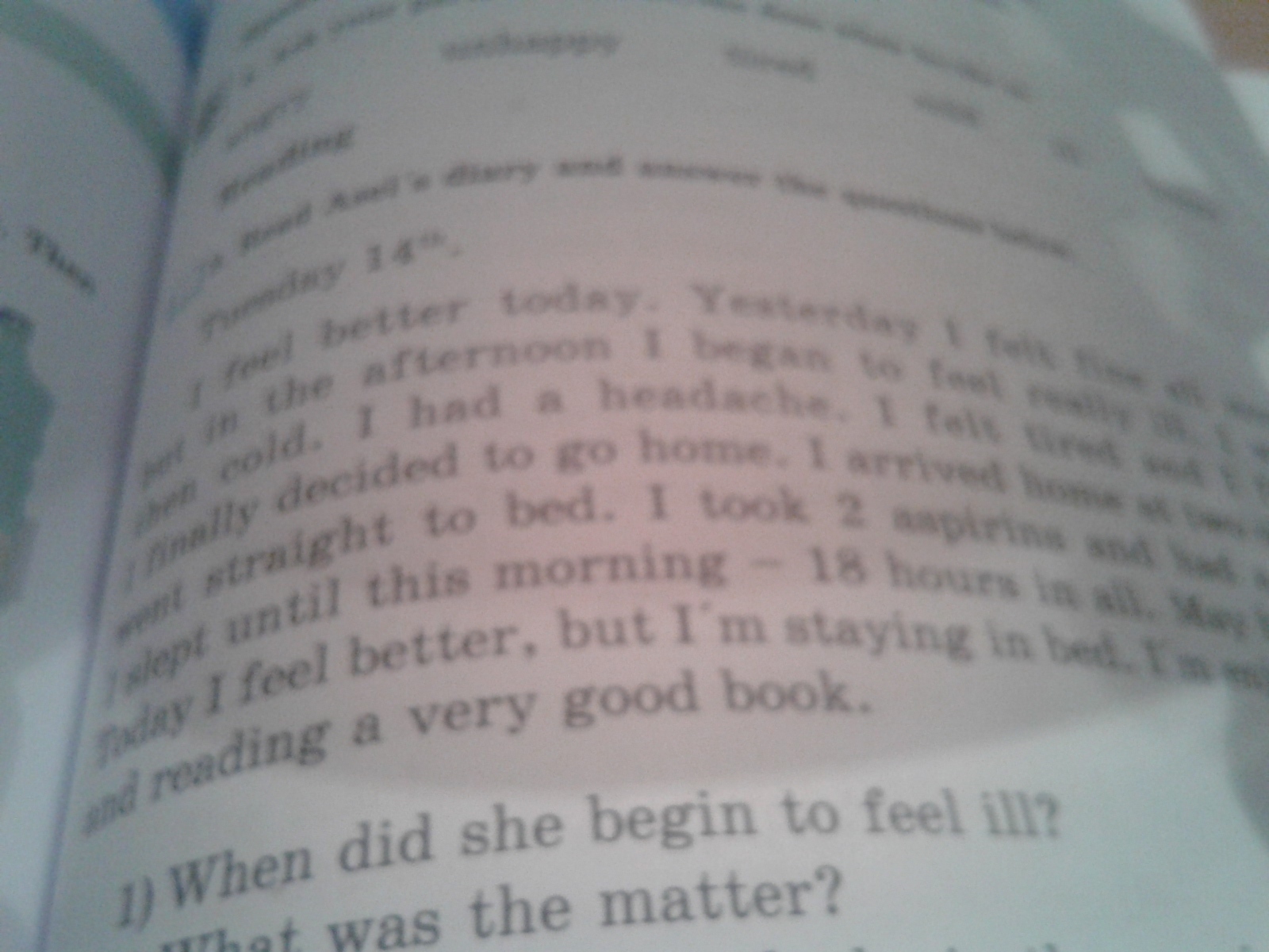 ответьте на вопросы When did she begin to feel ill? What was the matter?