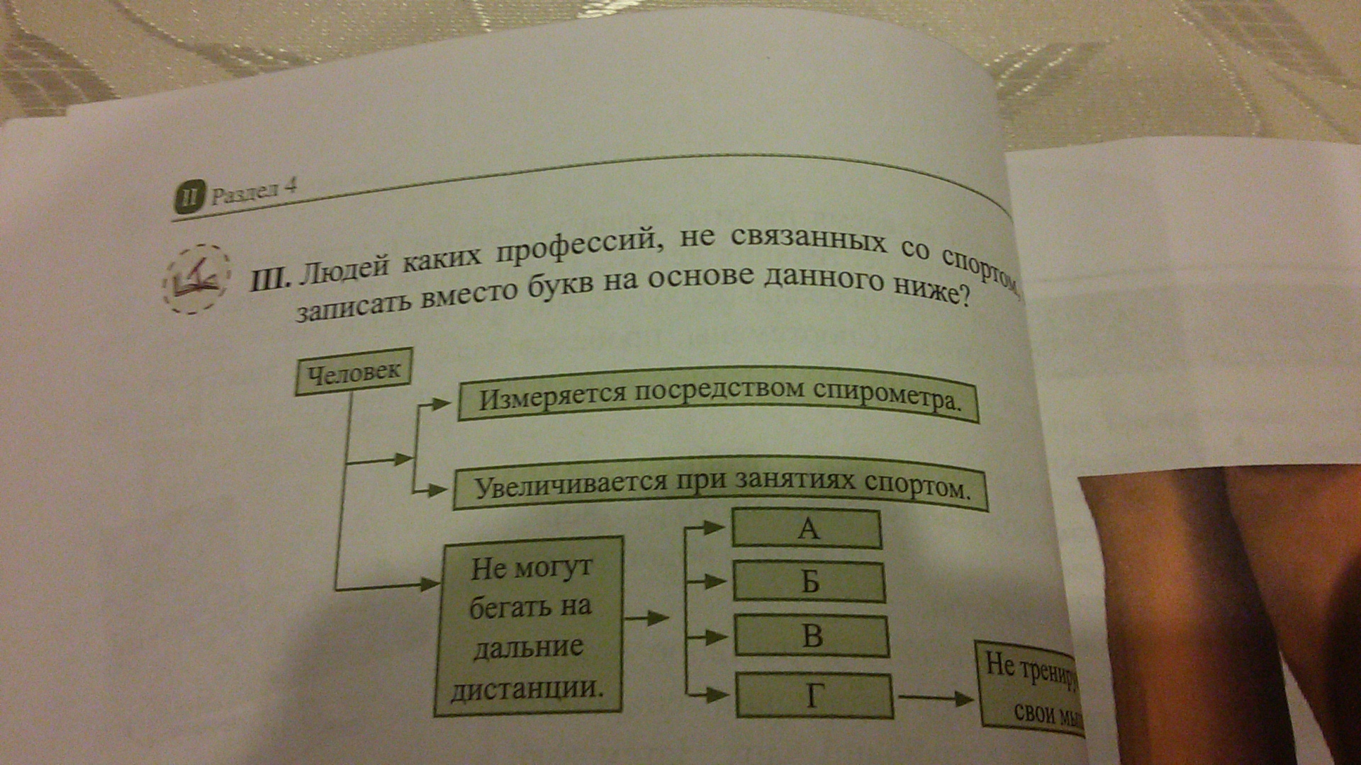 Здравствуйте!Мне нужна срочная помощь с 2 заданиями.1)Во время дыхания в норме сколько см^3 кислорода переходит из воздуха,вдыхаемого в течение минуты,в кровь и сколько см^3 углекислого газа будет в выдыхаемом воздухе?А 2-ое задание я фотографирую.