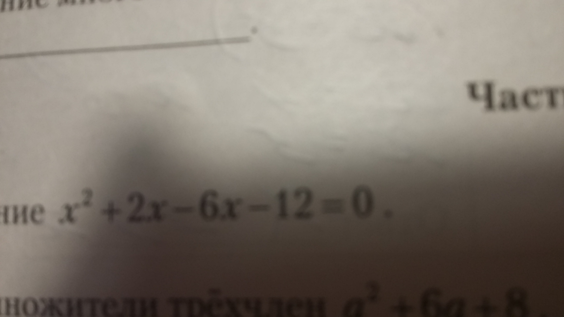 х^2-4х-12=0. D=16+4×1×12=64. x=(4-√64)÷2=(4-8)÷2= -2. x=(4+√64)÷2=(4+8)÷2=6