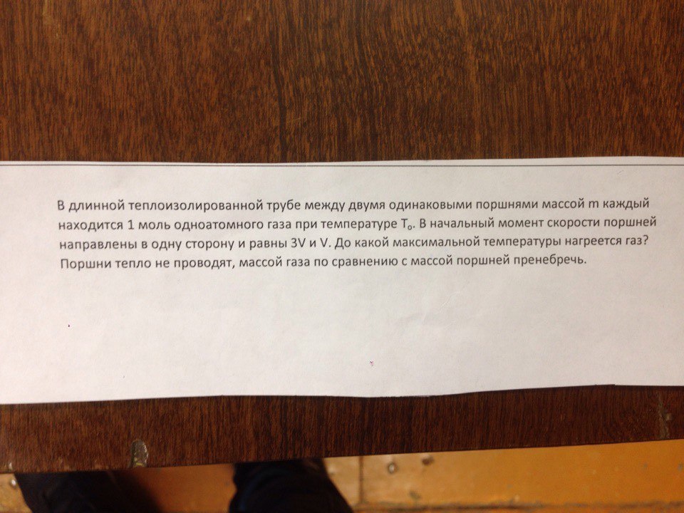 Т к по условию задачи стенки и поршни теплонепроницаемы, то Q=0 и