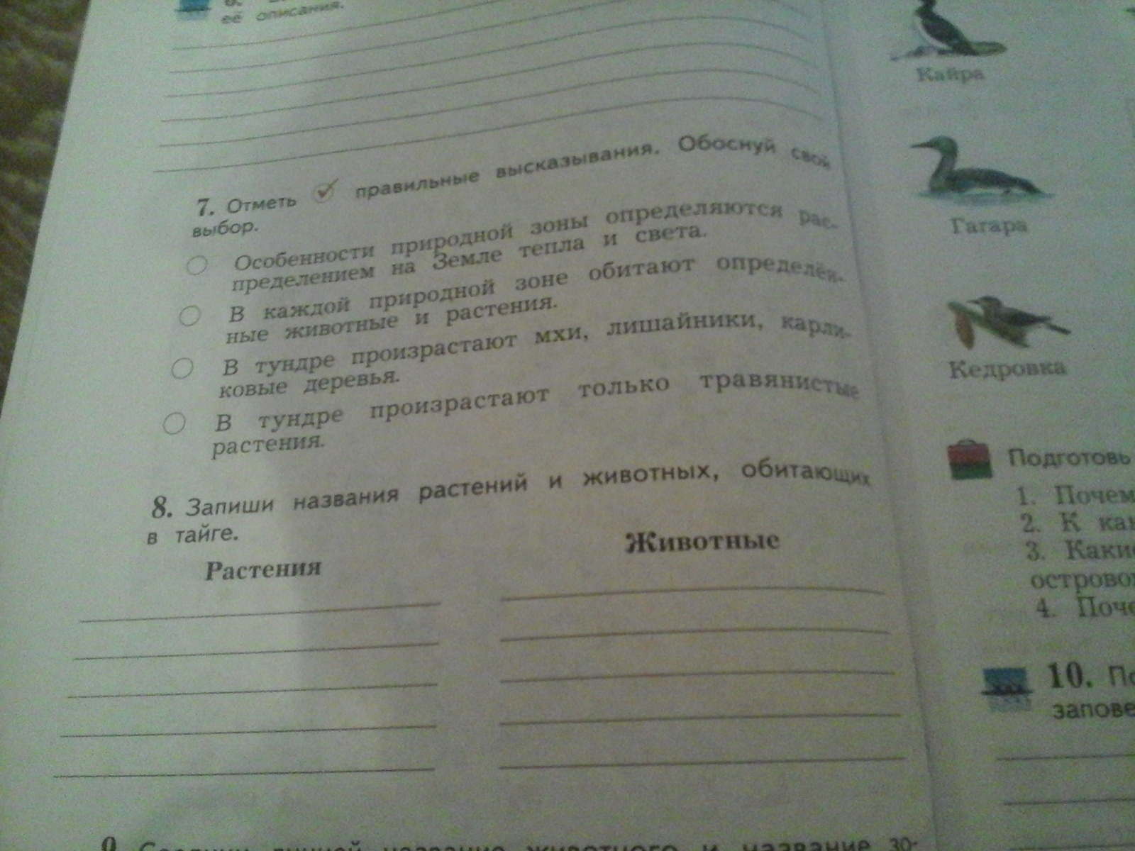 Животные: Бурундук, Кедровка, Рысь,Филин, Беркут, Бурый медведь,Глухарь, Волк.