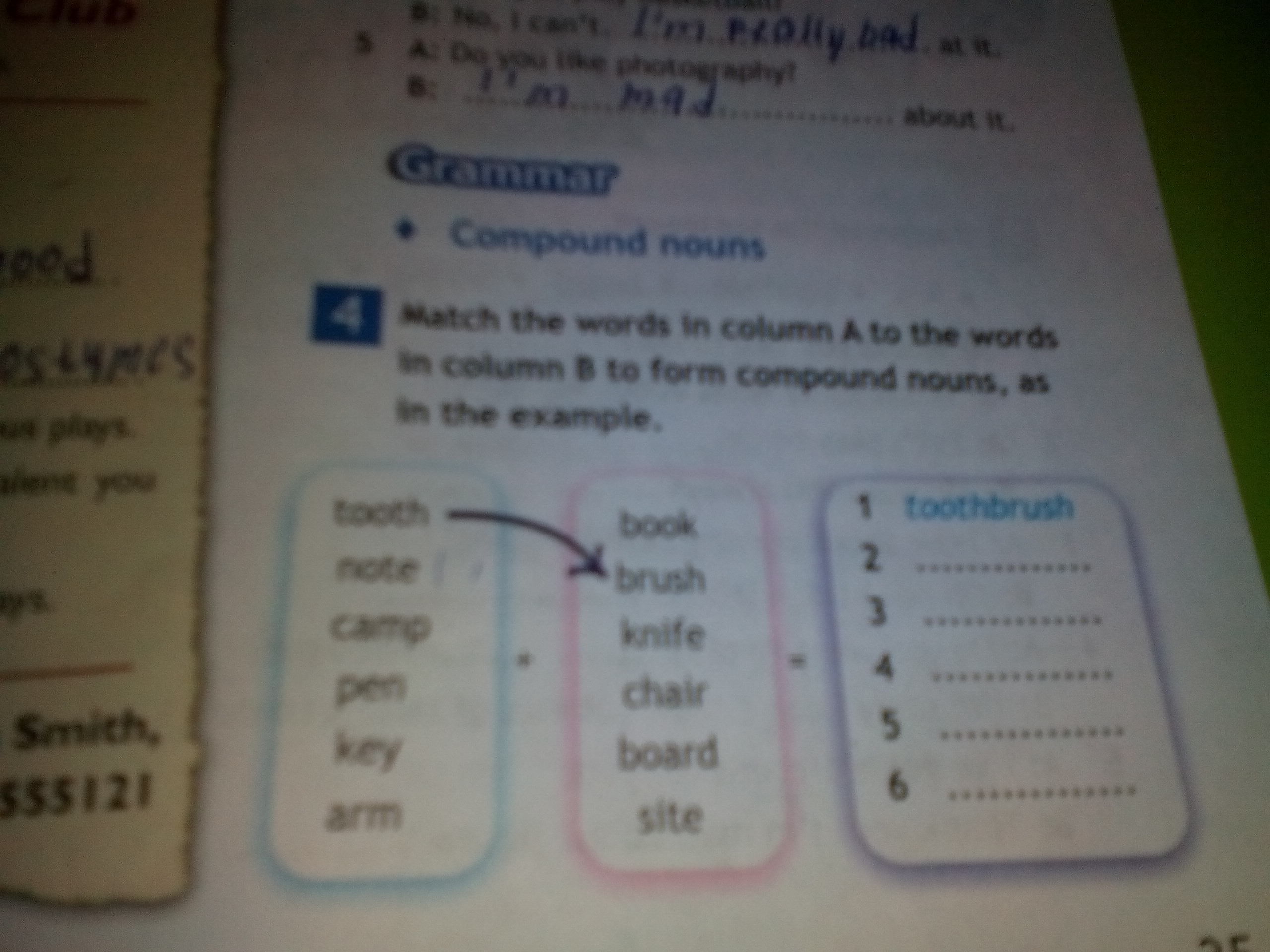 Match the words in column A to the words in column B to gorm compound nouns,as in the example .