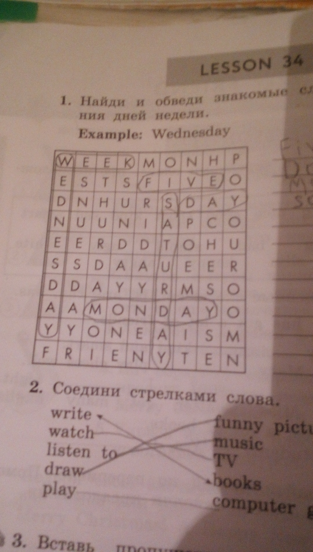 Найди и обведи знакомые слова.Выпиши названия дней недели . Помогите пожалуйста.