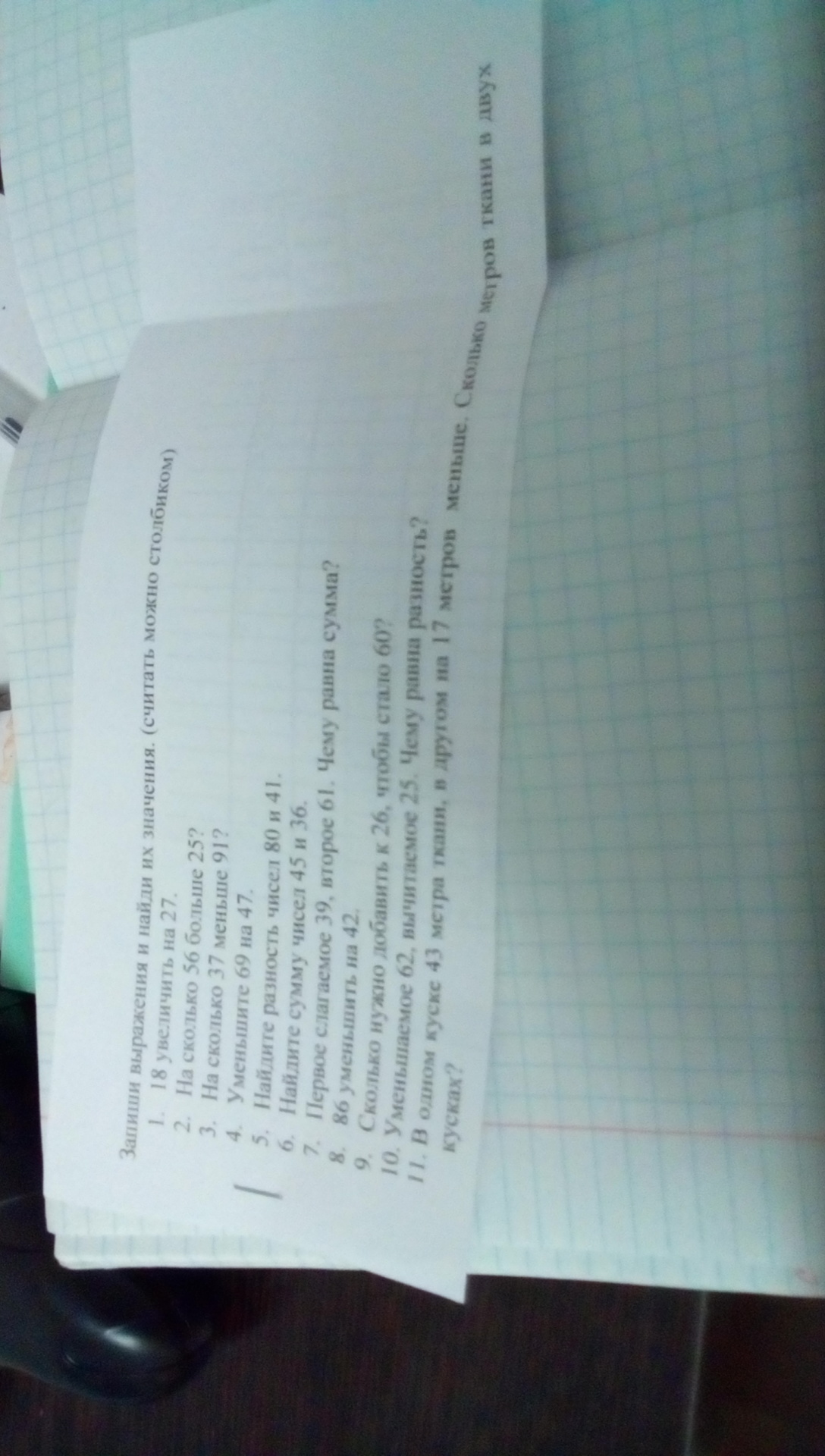 Запиши выражения и найди их значения