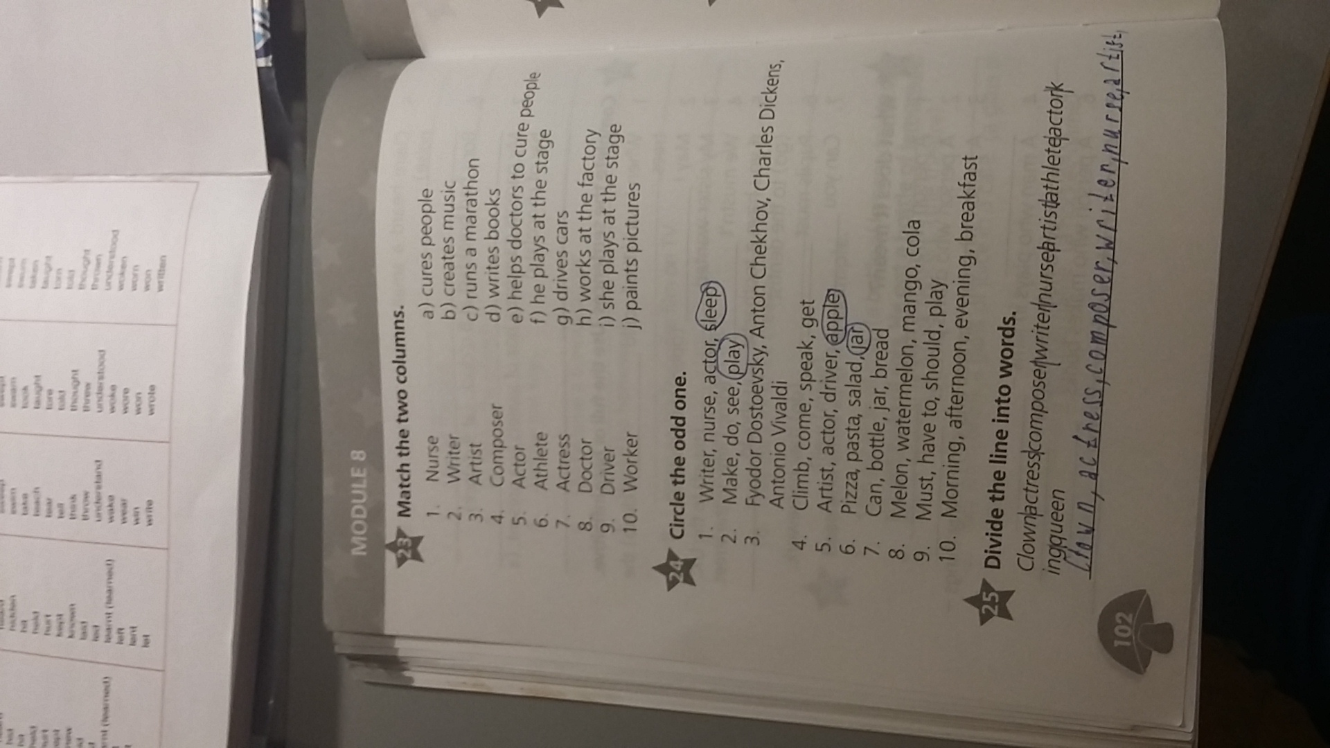 24) 1)sleep; 2)play; 3)Antonio Vivaldi; 4) speak; 5)apple; 6)jar; 7)bread; 8)cola; 9)play; 10) breakfast
