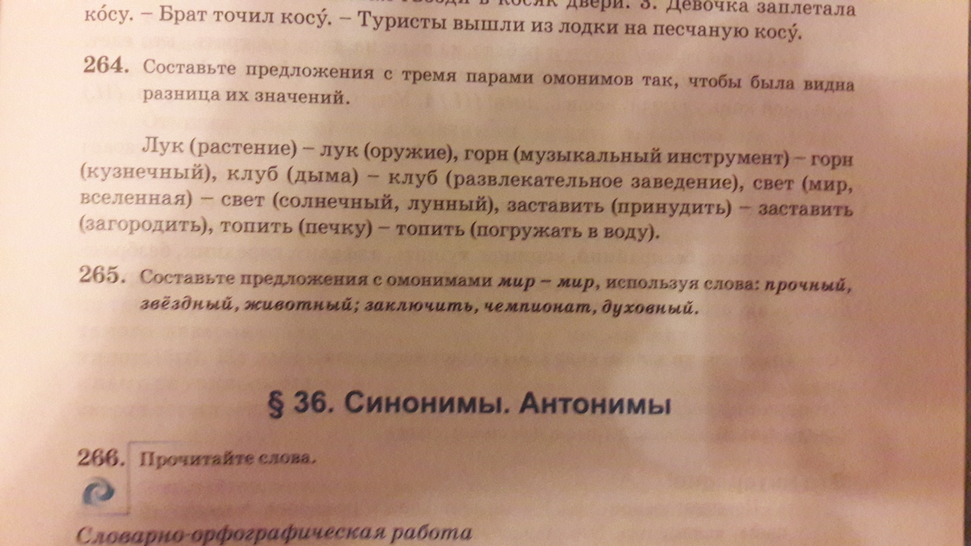 Составьте предложения с тремя парами омонимов так, чтобы была видна разница их значений. Упражнение 264. Помогите пожалуйста. Срочно!