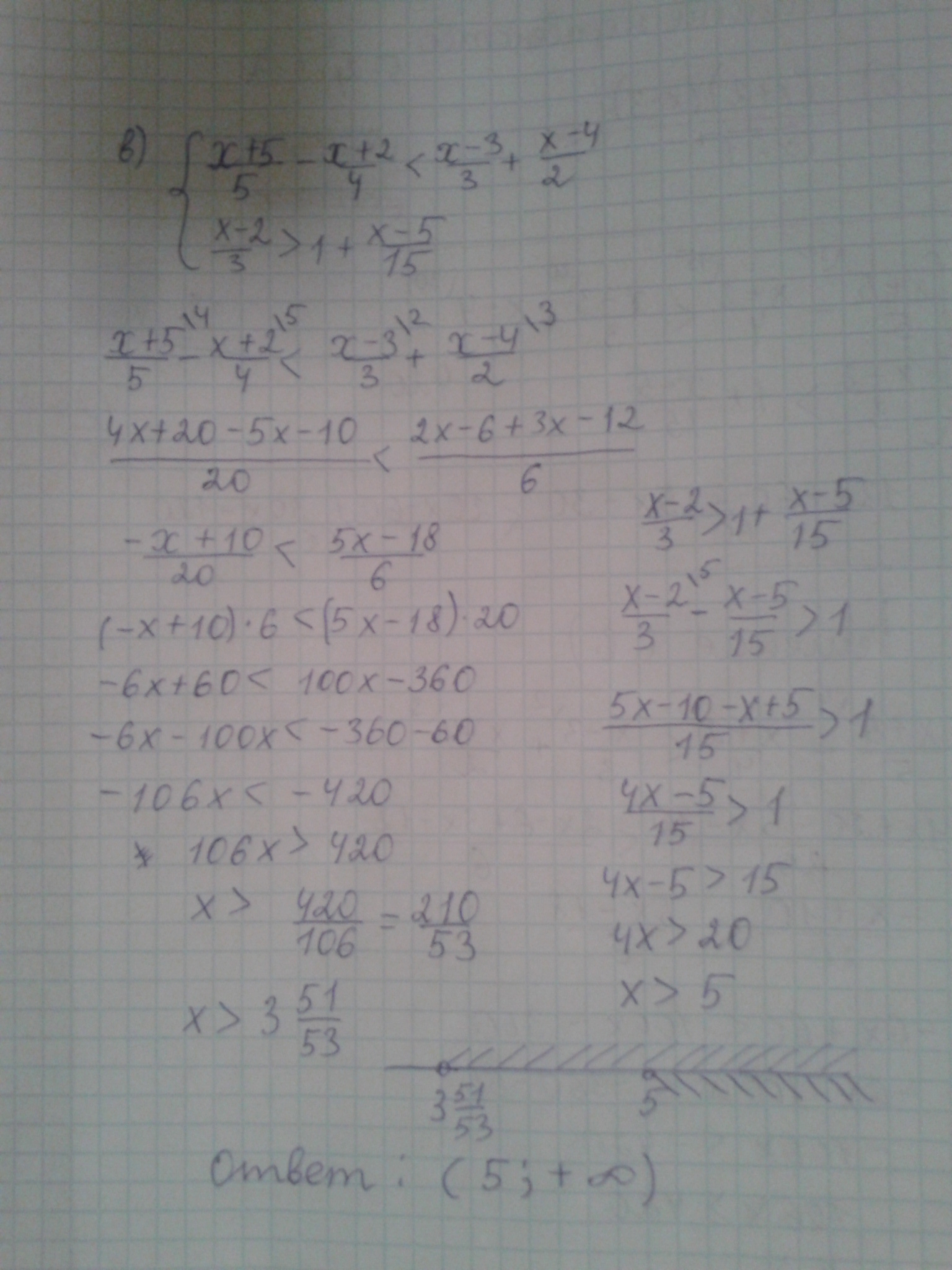 Чет 2 нифига,получилось х> 1 47/53 и х<-5/11