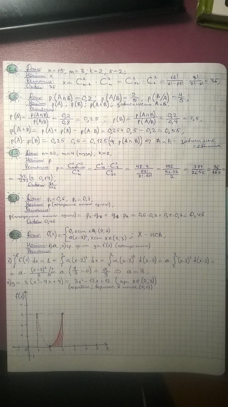 1.2) Дано: P(A*B)=0,2; P(A|B)=2/5. Найти P(A), P(B), P(A+B). Зависимы события A и B?