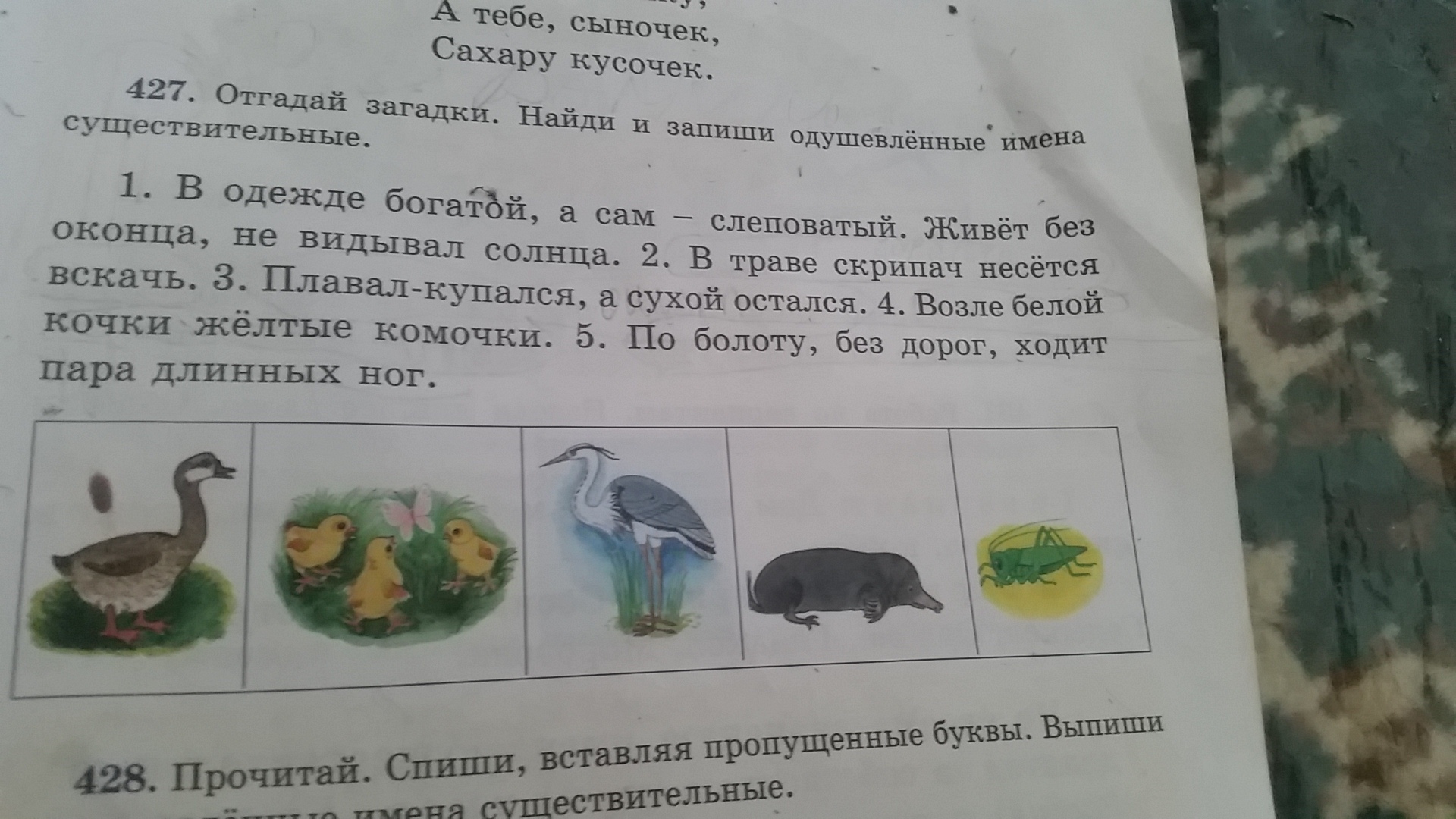 1 крот 2 сверчёк 3 утка или гусь 4 циплята 5 цапля