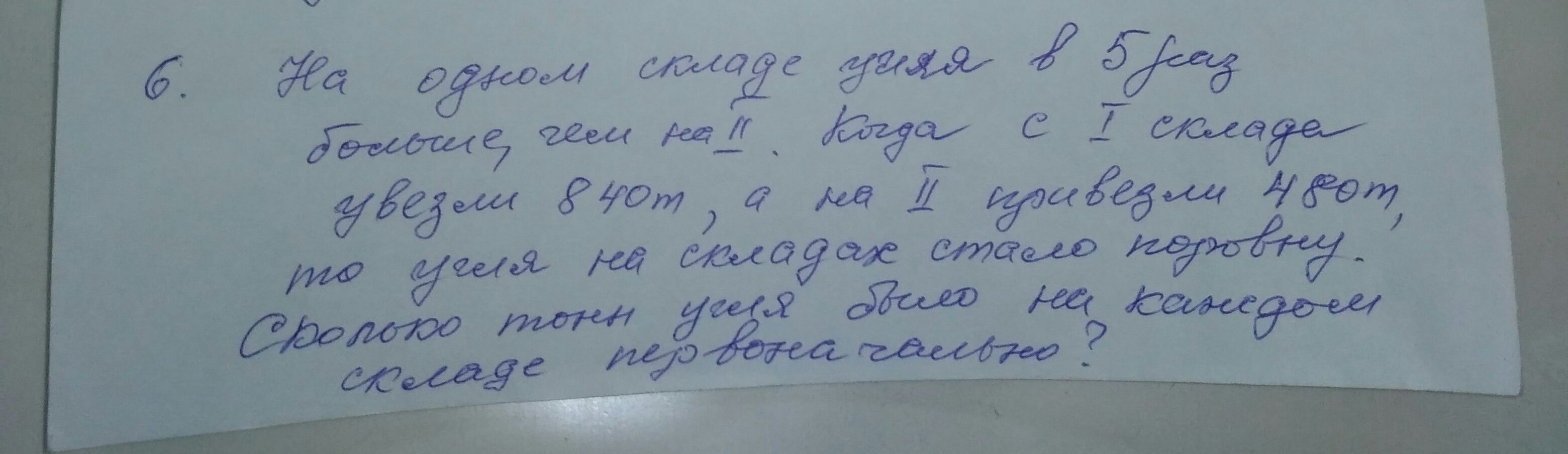 за х примем первый склад, значит 5х - второй склад, получаем: