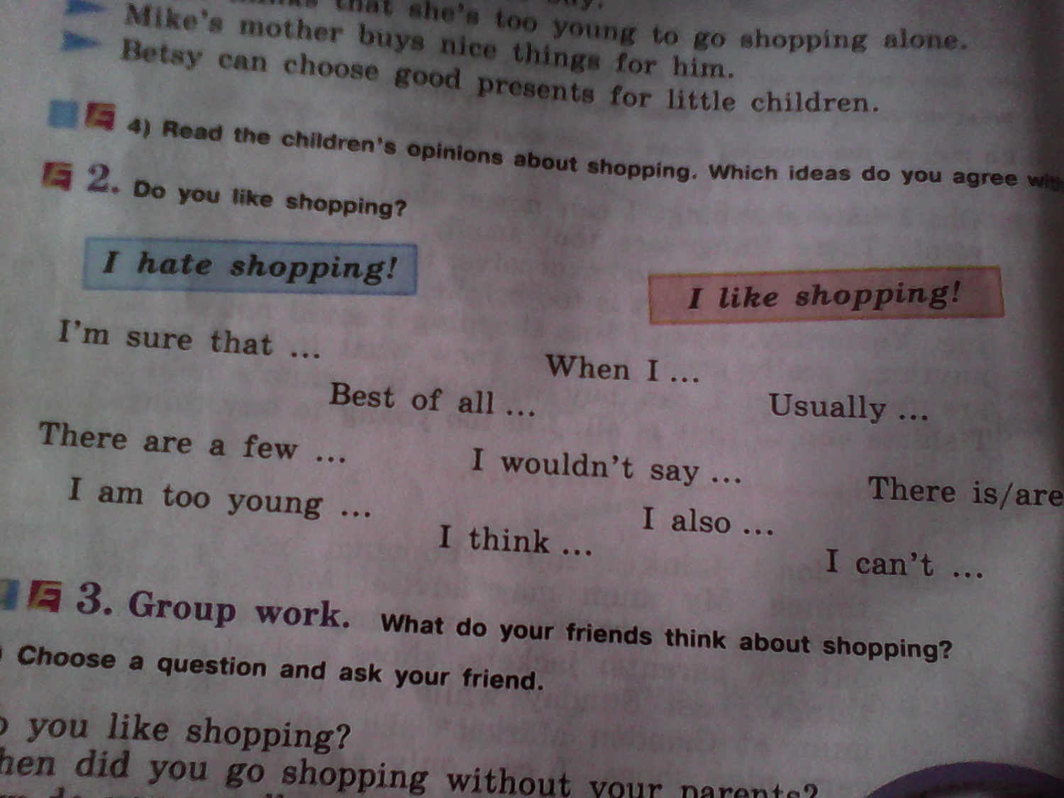 Тут спрашивают :"Любите ли вы ходить по магазинам?"