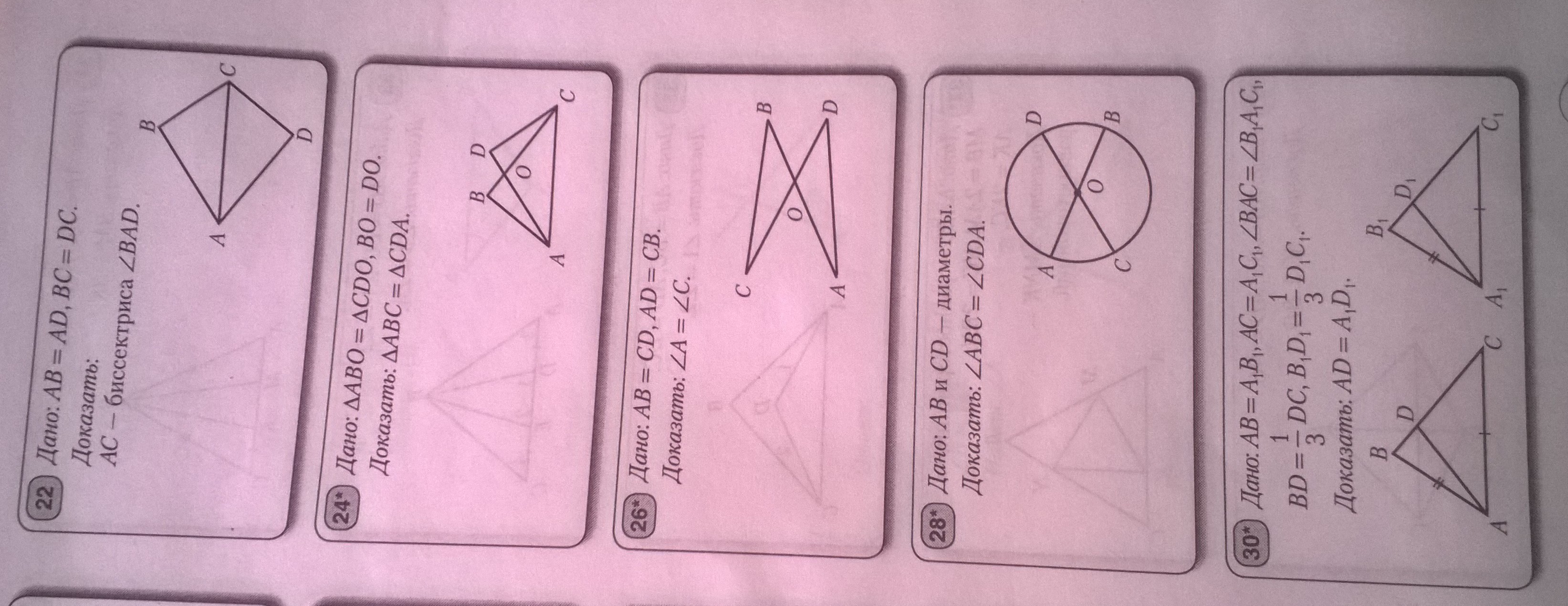 1 номер.AD= AB и DC= BC(по условию.) Следовательно что и углы у них равны.АС-основание. Треугольники равны по 3 признаку. следовательно угол ВАС= углу DАC . И раз они равны и у них одно основание,следовательно AC-биссектриса.
