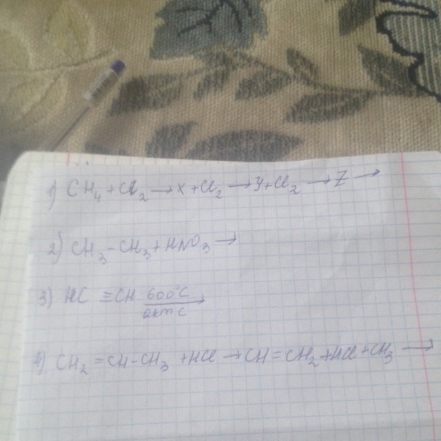 CHCL3+CL2-->CCL4+HCL