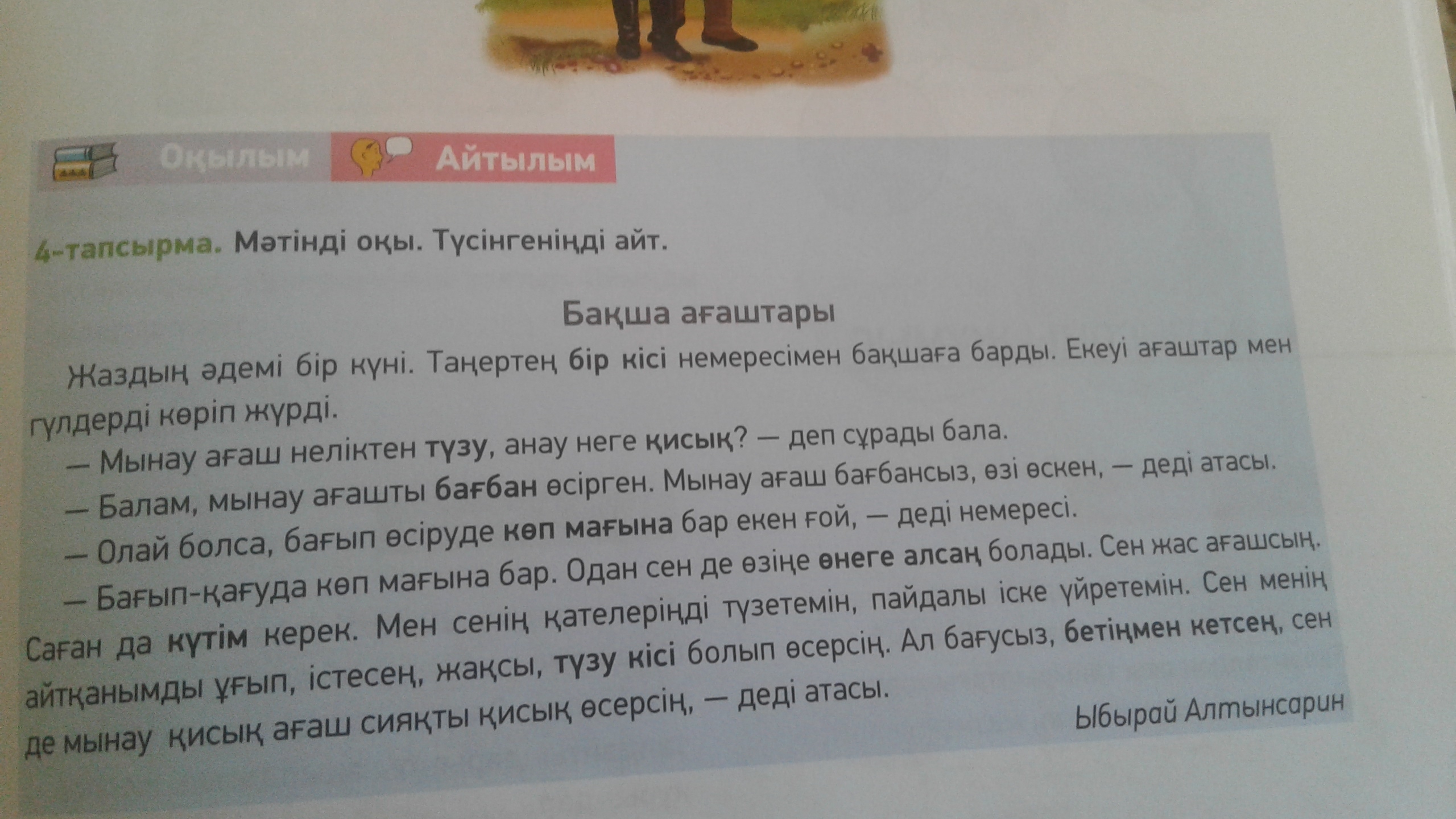 - Да, уход имеет большое значение. От этого ты можешь себе пример взять. Ты как молодое дерево. Тебе нужен уход. Я исправляю твои ошибки, научу полезным делам. Ты если будешь меня слушать, делать что я говорю, вырастешь хорошим, прямым человеком. Без присмотра, без воспитания вырастешь, как вот это кривое дерево кривым сказал дедушка.