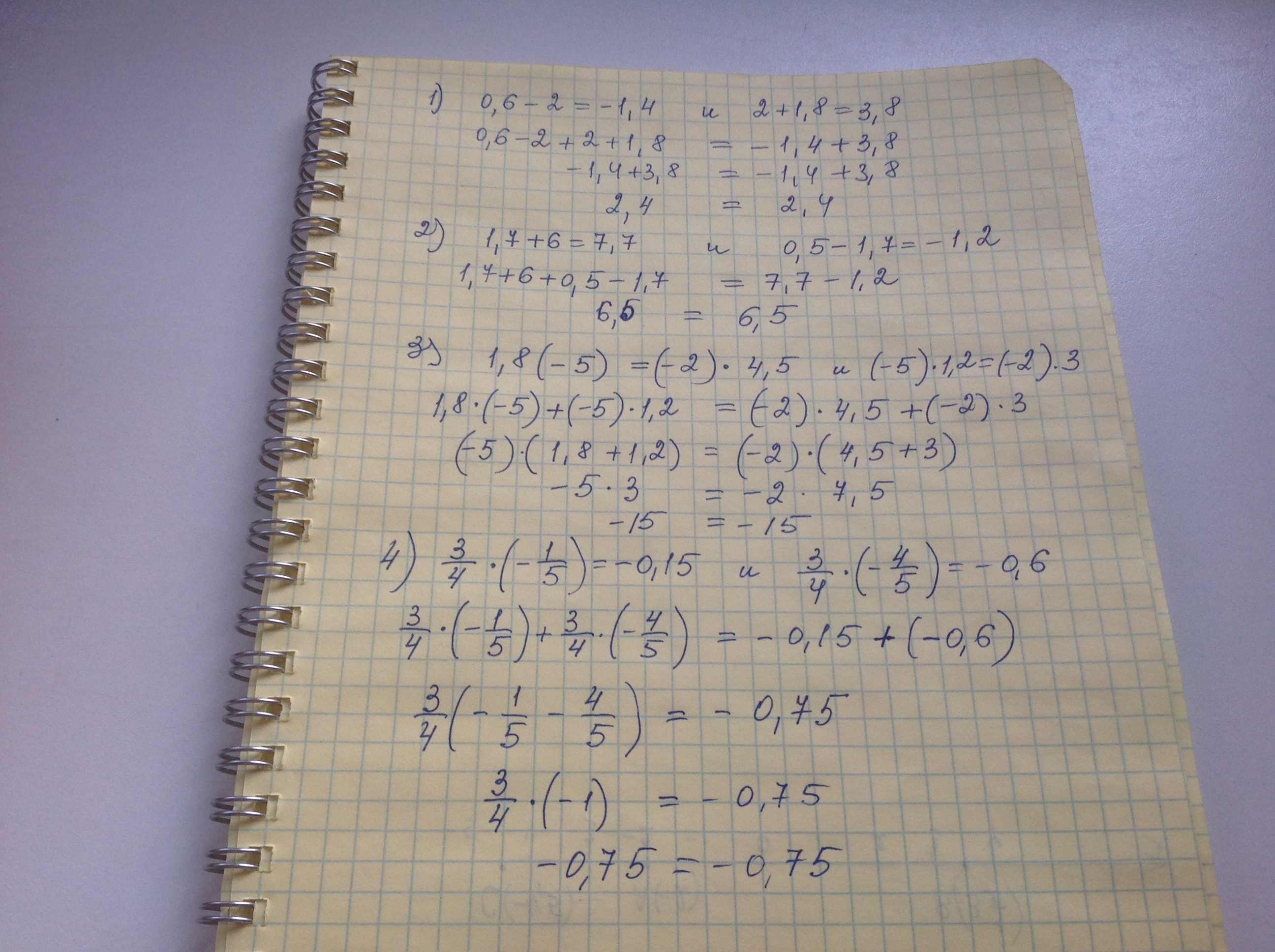 4)3/4*(-1/5)=-0,15 и 3/4*(-4/5)= -0,6