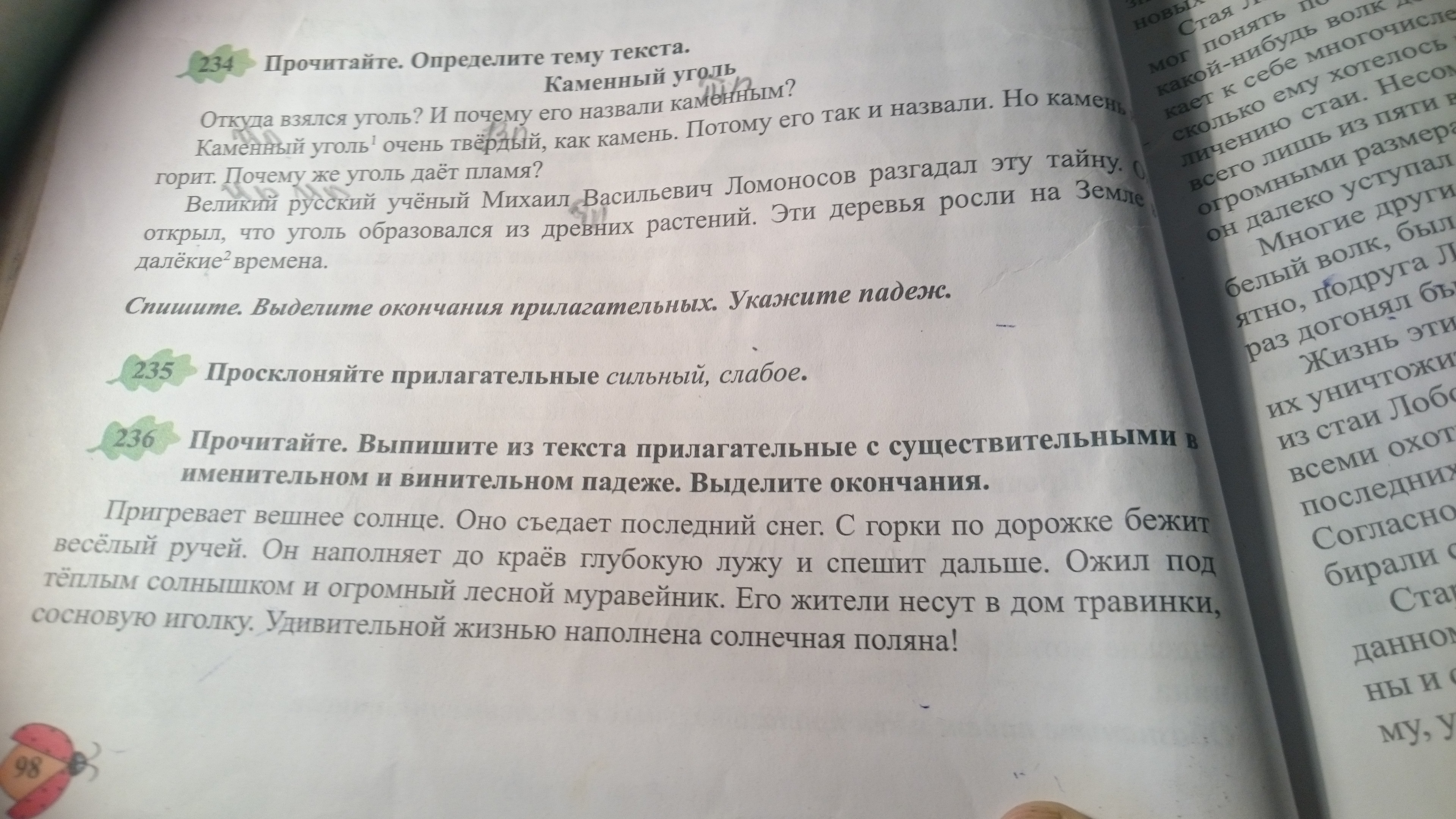 Вешнее солнце( им падеж. Окончание ее и е). Последний снег( вин падеж. Окончание ий и нулевое). Веселый ручей(им падеж окончание ый и нулевое). Глубокую лужу(вин падеж. окончание ую и у). огромный муравейник( им падеж окончание ый и нулевое.) лесной муравейник(им падеж окончание ой и нулевое). Сосновую иголку(вин падеж. окончание ую и у.) Солнечная поляна(им падеж. окончание ая и а)