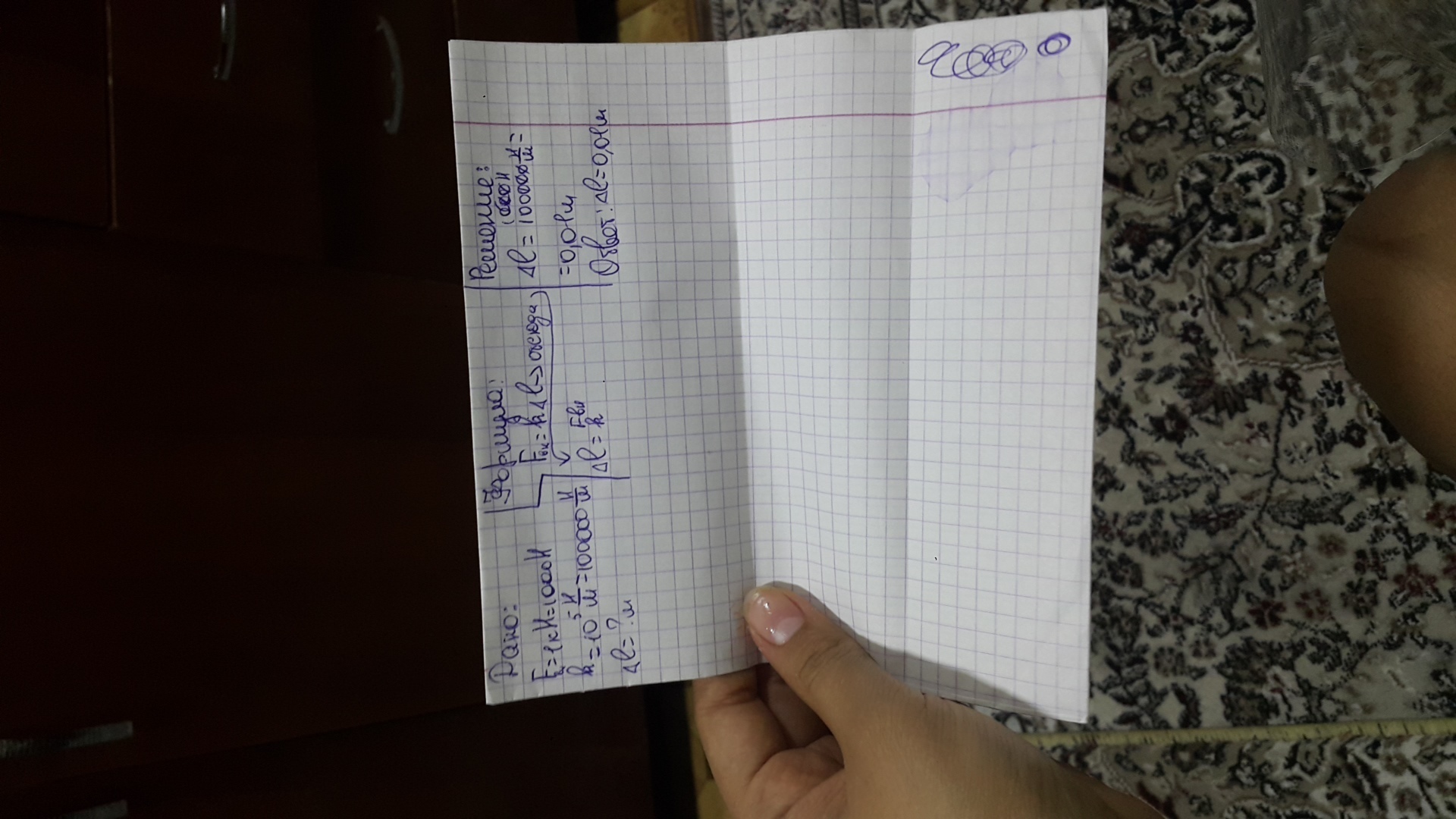 На сколько растянется буксировачный трос, если грузовик тянет на буксире легковую машину с силой 1 кН? Жесткость троса 10 в 5 степени Н/м.
