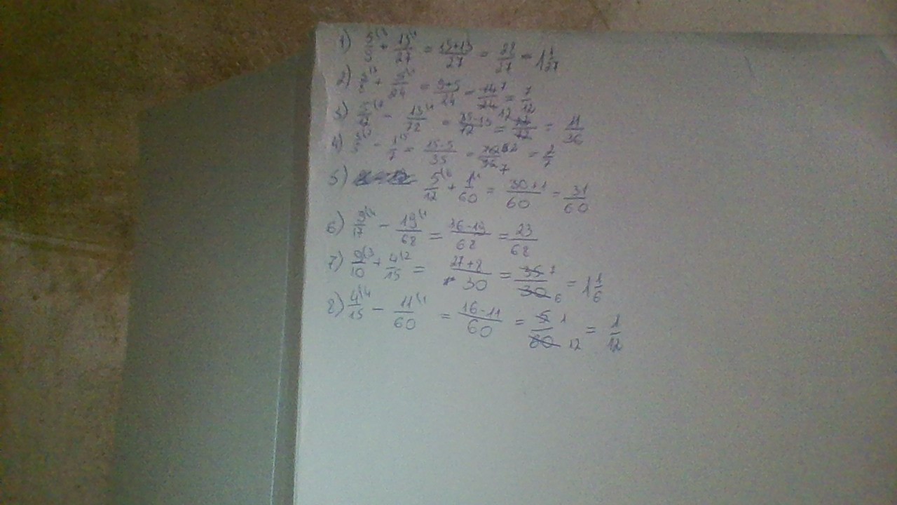 7) 9/10+4/15=27/30+8/30=35/30=1 5/30=1 1/6