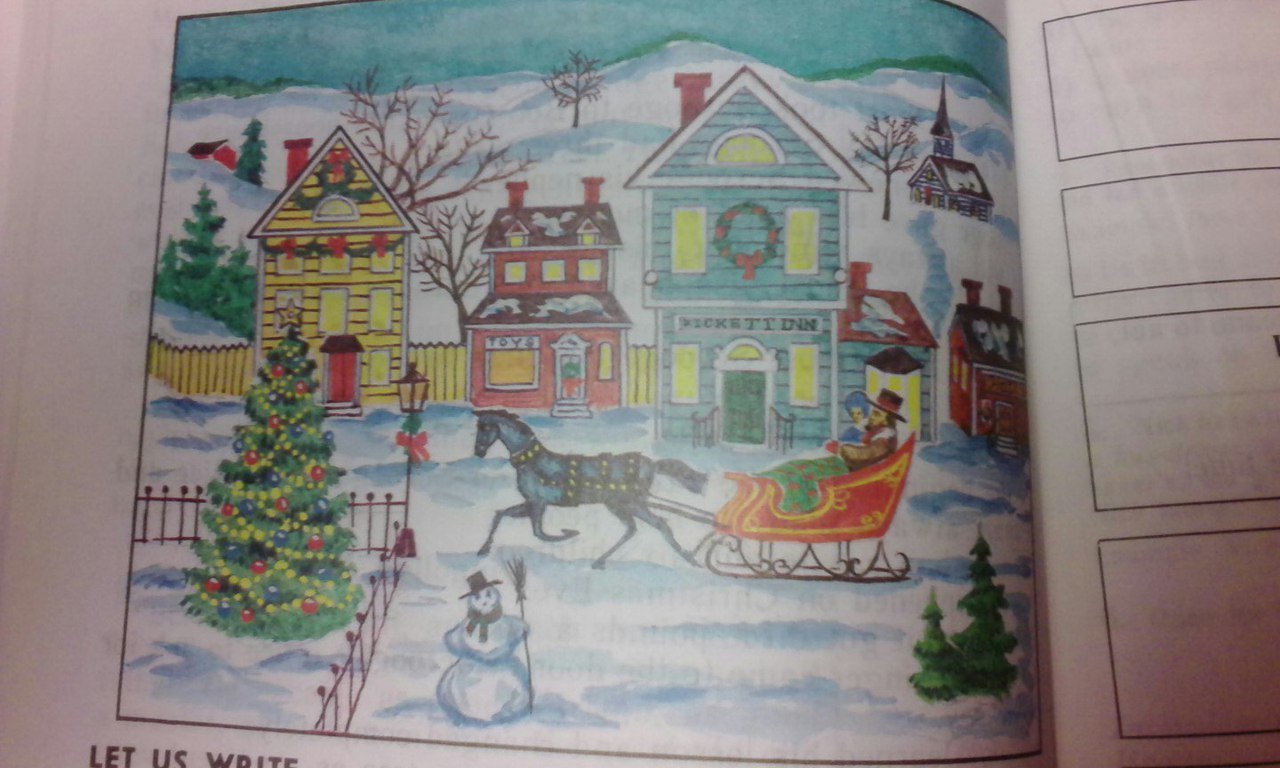 на картинке новогодняя настроения.все вяглядить очень красиво.Тут можно играть снежки сделать снеговака и все такое.Околь нашего дома стоит наряжанная елка. у нас также и дома красиво все украшено.