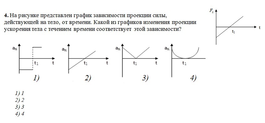 2) 2 изменения проекции ускорения тела с течением времени соответствует графику зависимости проекции силы, действующей на тело от времени.