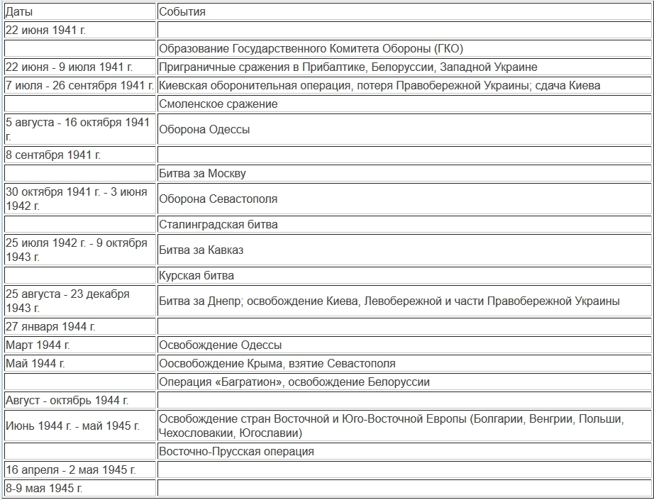 Первое допишите что начало великой отечественной войны. Я пропустила слово.