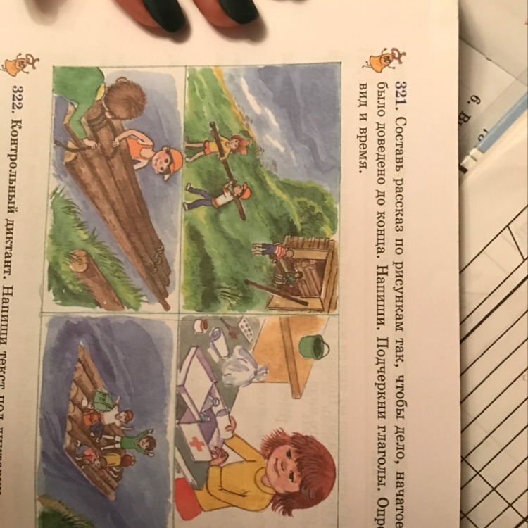 Составь рассказ по рисунку так чтобы дело начатое детьми было доведено до конца Напиши Подчеркини глаголы определи их вид и время