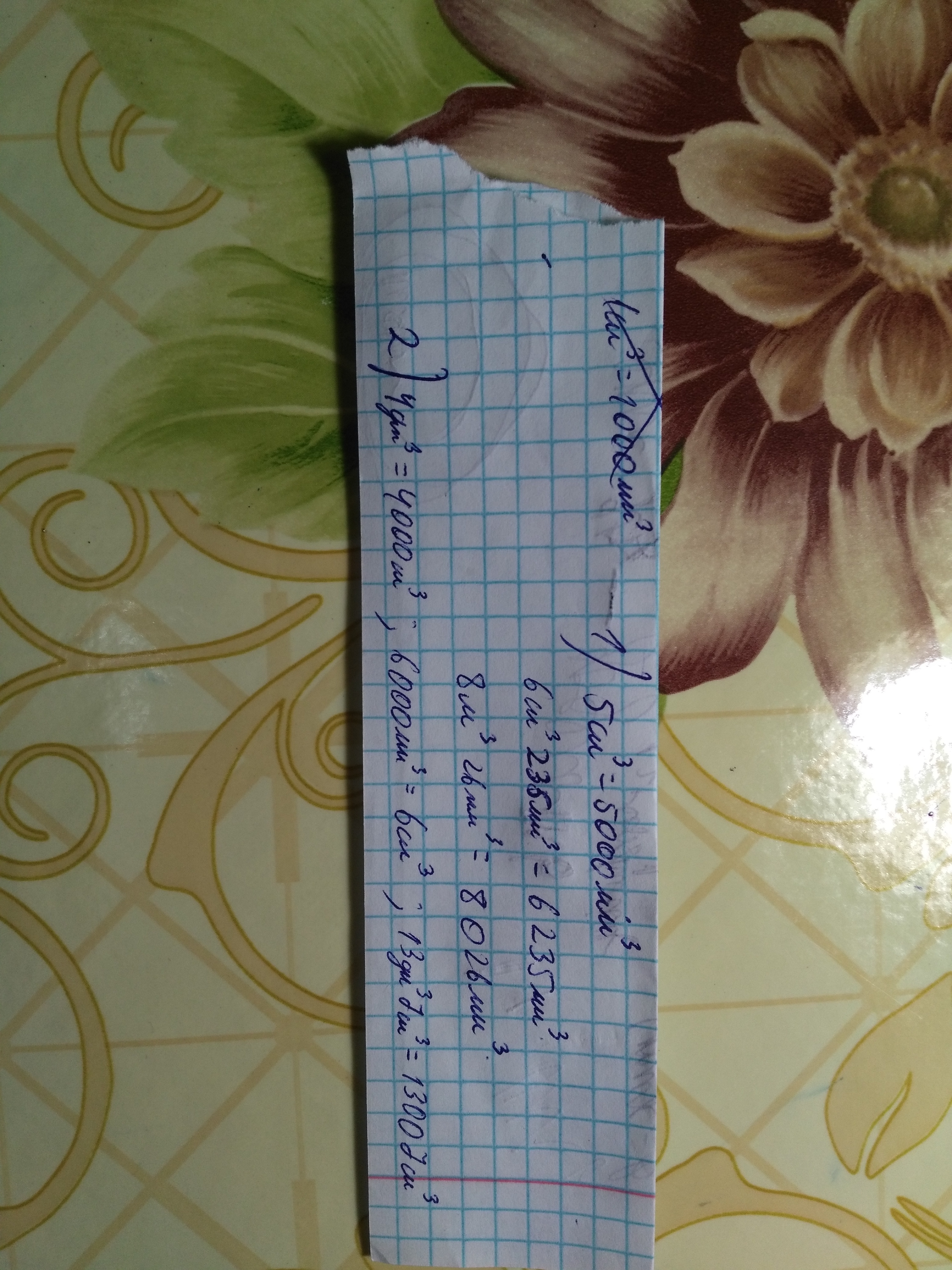 1) в кубических миллиметрах: 5 см в кубе; 6 см в кубе 235 мм в кубе; 8 см в кубе 26 мм в кубе.