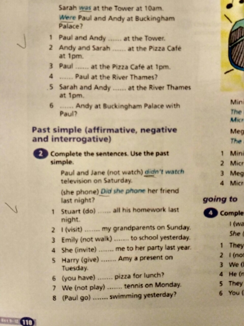 1) did 2) visited 3)didn't walk 4)invited 5) gave 6)did you have 7) didn"t play 8) did Paul go