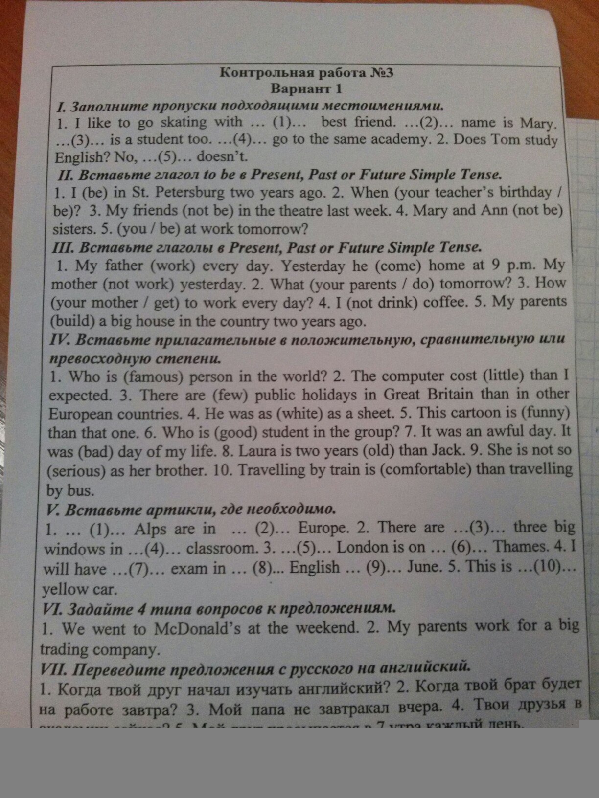III. 1. woks, came, didn't work 2. will your parents do 3. gets 4. don't drink 5. build