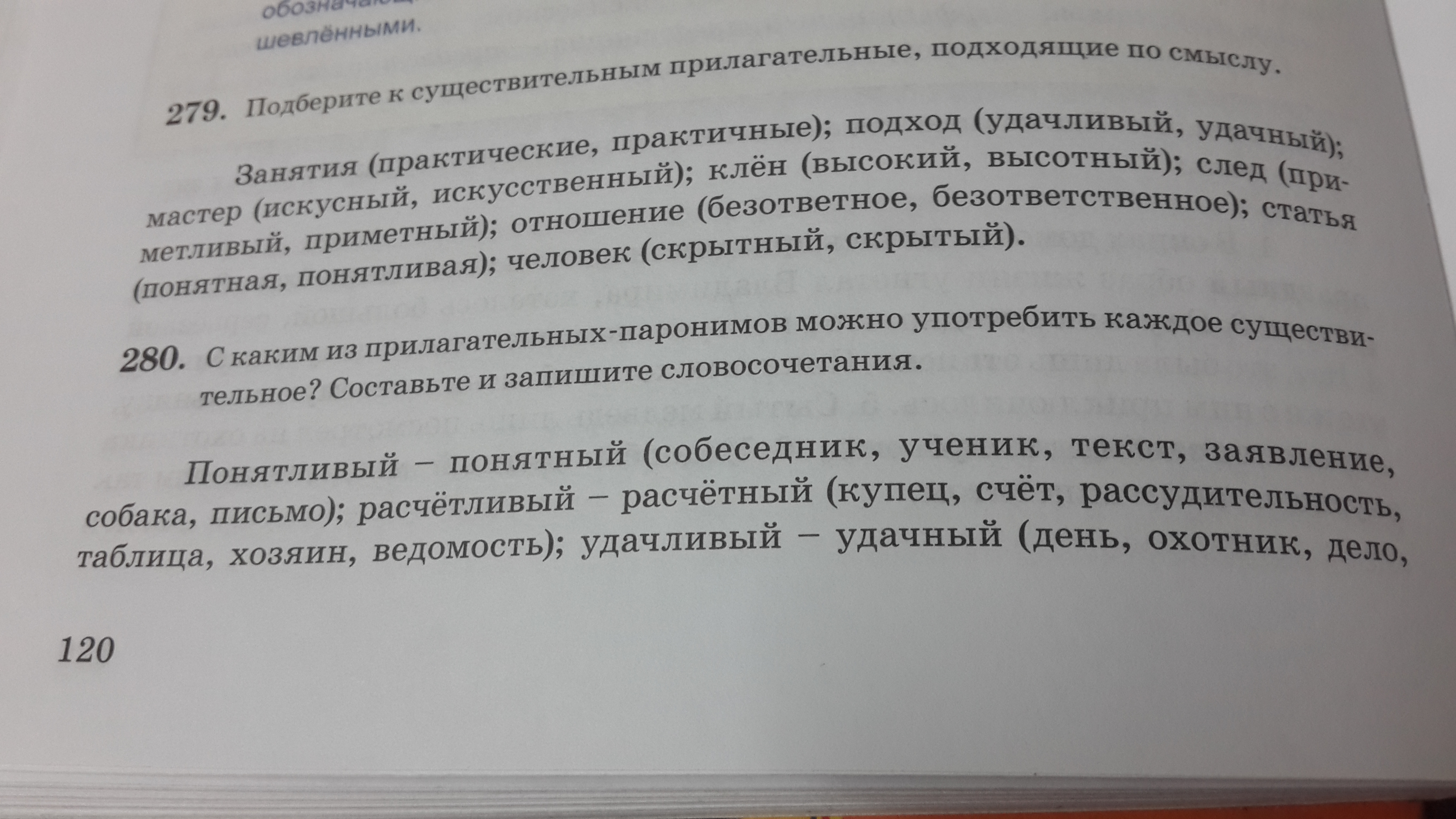 с какими из прилагательных паронимов можно употребить каждое существительное? Составьте и запишите словосочетания