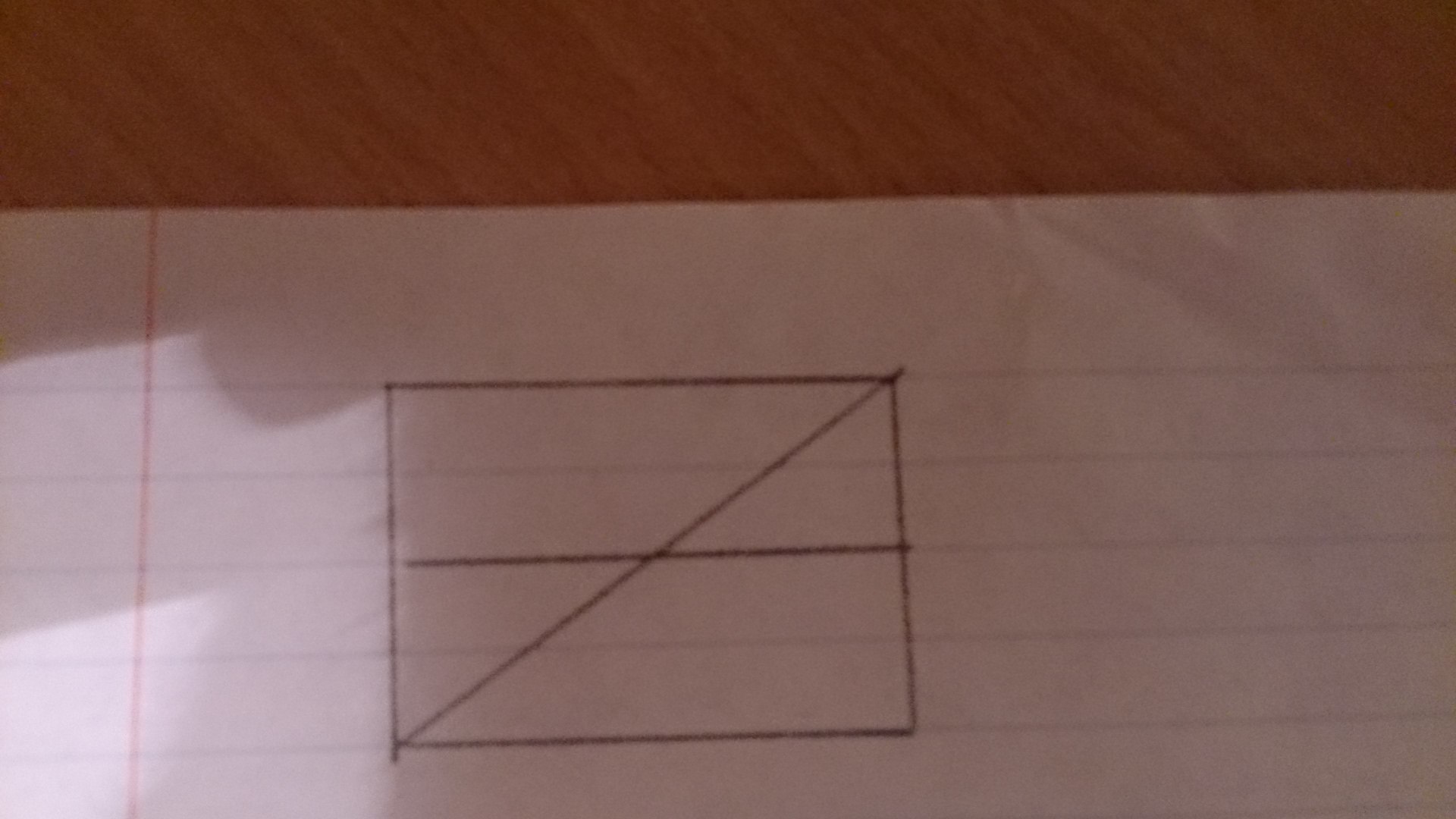 Разделить прямоугольник двумя линиями, чтобы получилось:два четырехугольника и два треугольника.2.