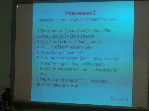 Нужно предложения либо Present Simple,либо в Present Progressive(Continuous)