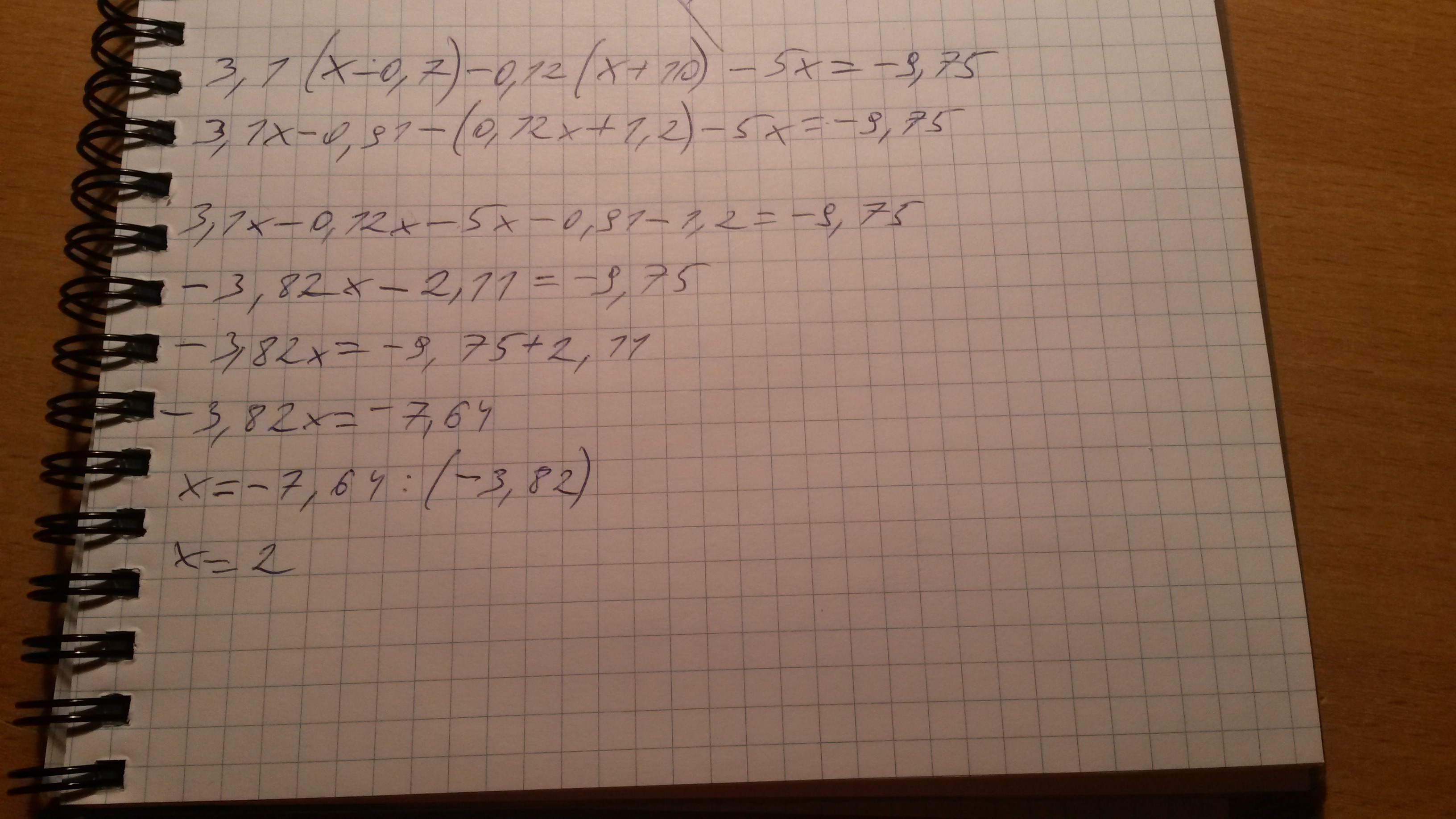 1.3(x-0.7)-0.12(x+10)-5x=-9.75