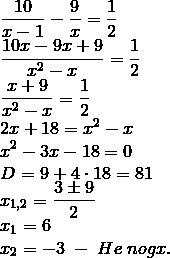 Пусть скорость первого x км/ч, тогда скорость второго x-1 км/ч. первый прошёл 9 км, второй 19-9 = 10 км. Первый затратил 9/x ч, второй 10/(x-1) ч, что на 0,5 ч больше.