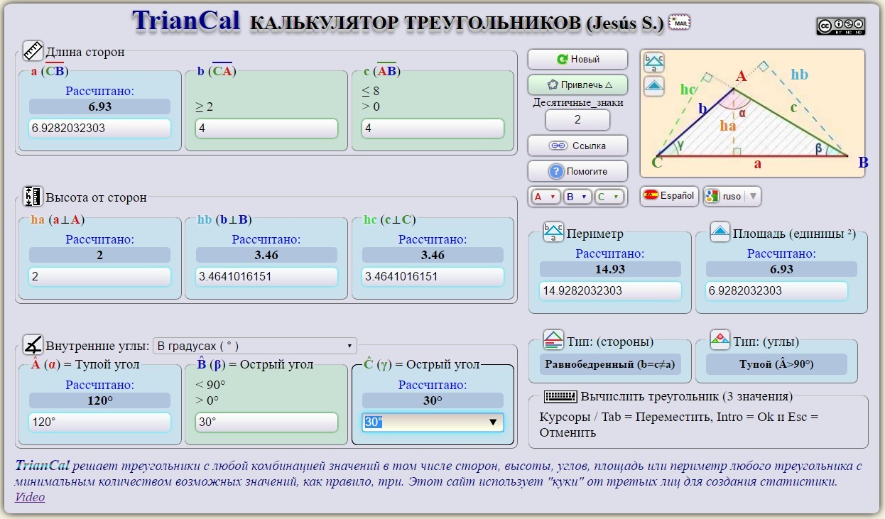 http://triancal.esy.es/?lang=en&b=4&c=4&B=30°
