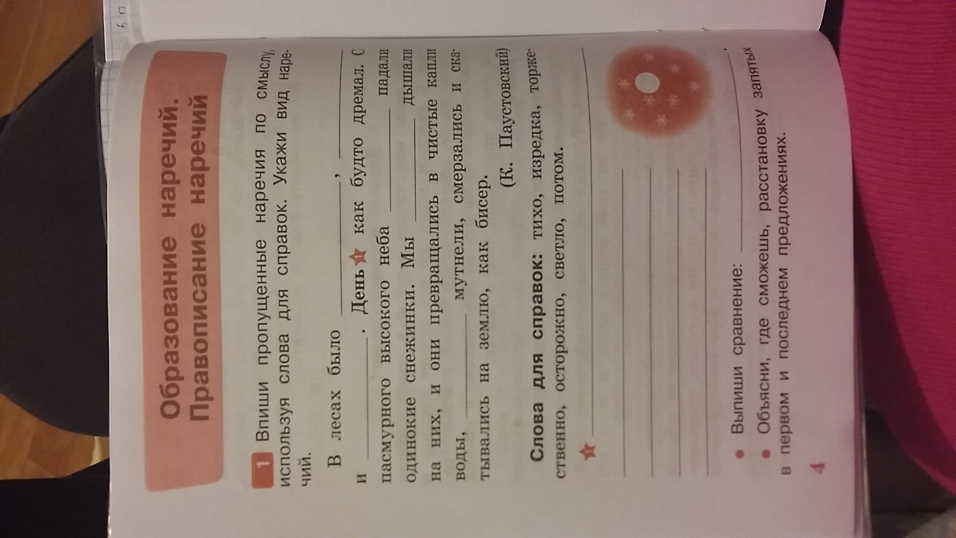 выпиши пропущенные наречия пл смыслу, используя слова для справок.укажи вид наречий.