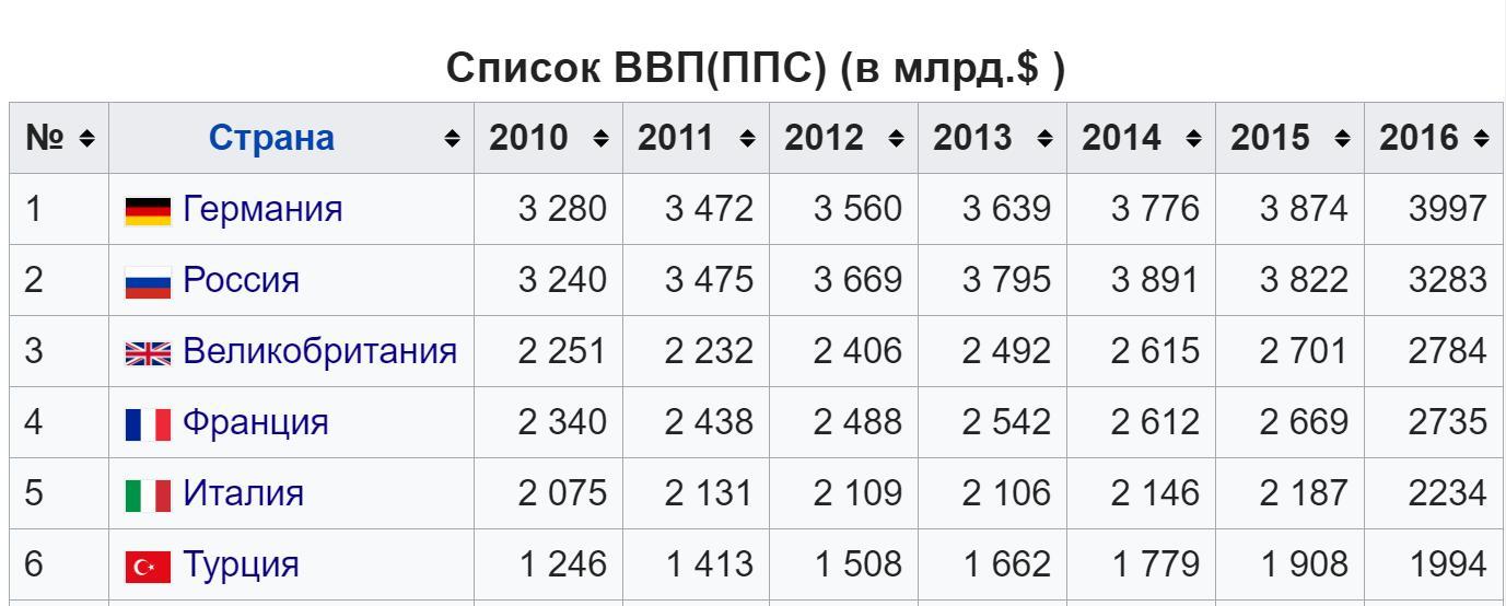Пять крупнейших стран Европы с самыми высокими показателями ВВП: