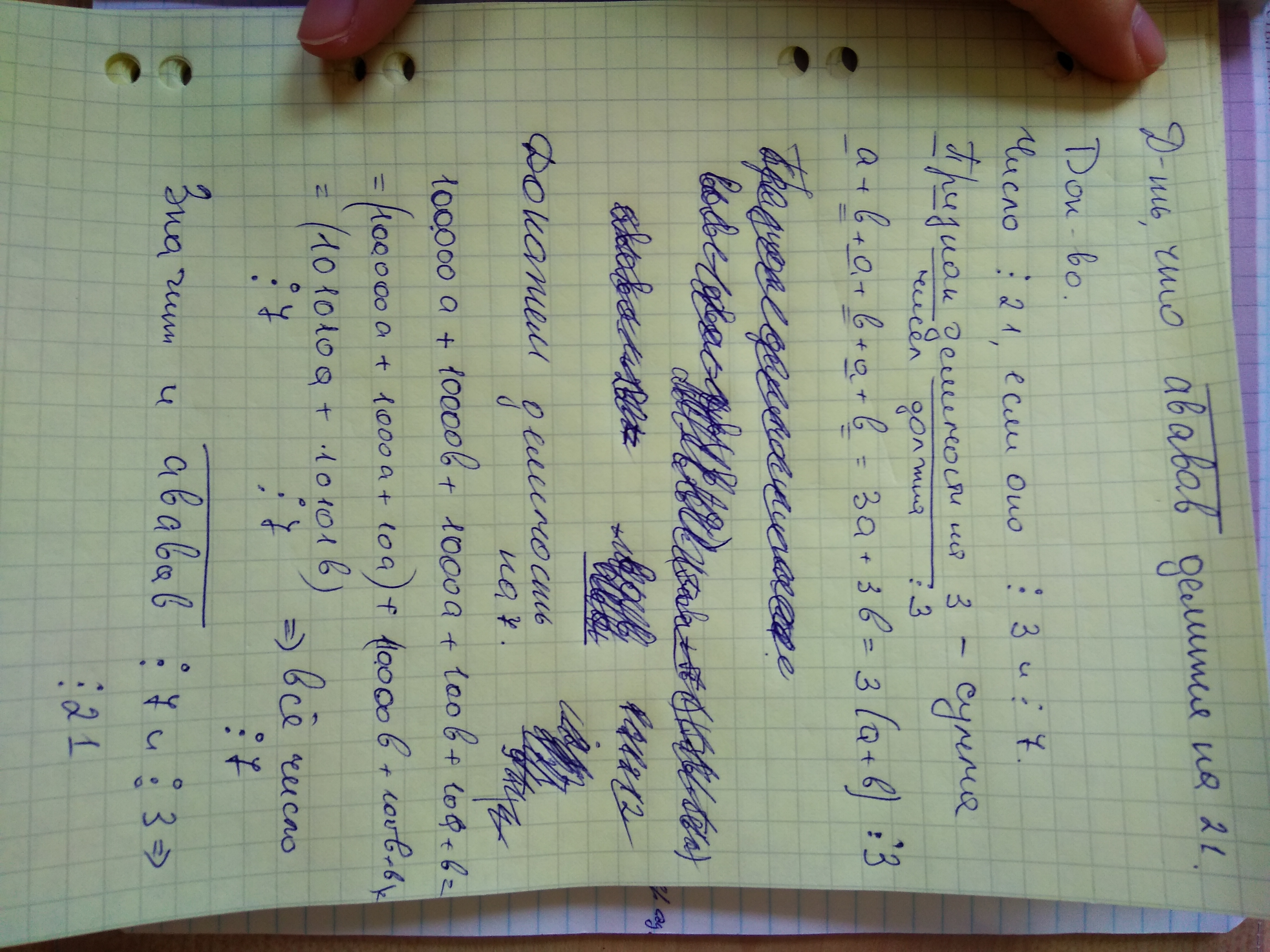 Делится на 21-это делится на 3 и 7. На 3 точно делится (сумма цифр числа делится на 3) на 7 делится, если результат вычитания последней удвоенной уифры из числа без этой цифры делится на 7. (12121-2*2):7=1731 делится на 7. Значит, все число делится на 21.