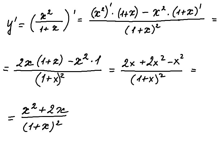y'=(2*x*(1+x)-x²)/(1+x)²=(2*x+2*x²-x²)/(1+x)²=(x²+2*x)/(1+x)².
