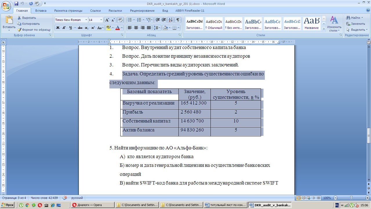 4. Задача. Определить средний уровень существенности ошибки по следующим данным: