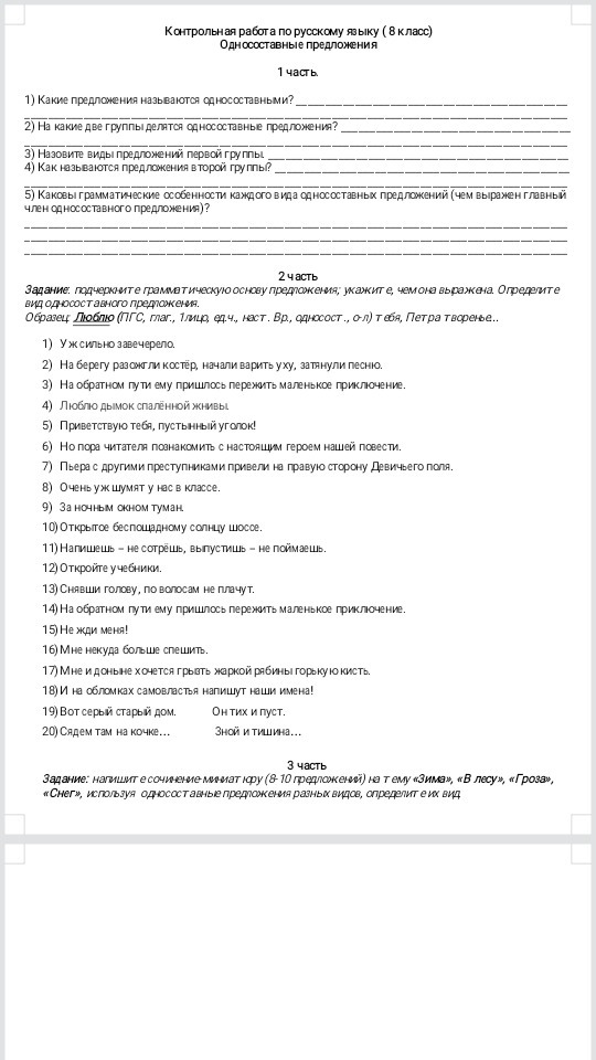 1)Односоставными предложениями называют те предложения в которых только один главный член предложения.