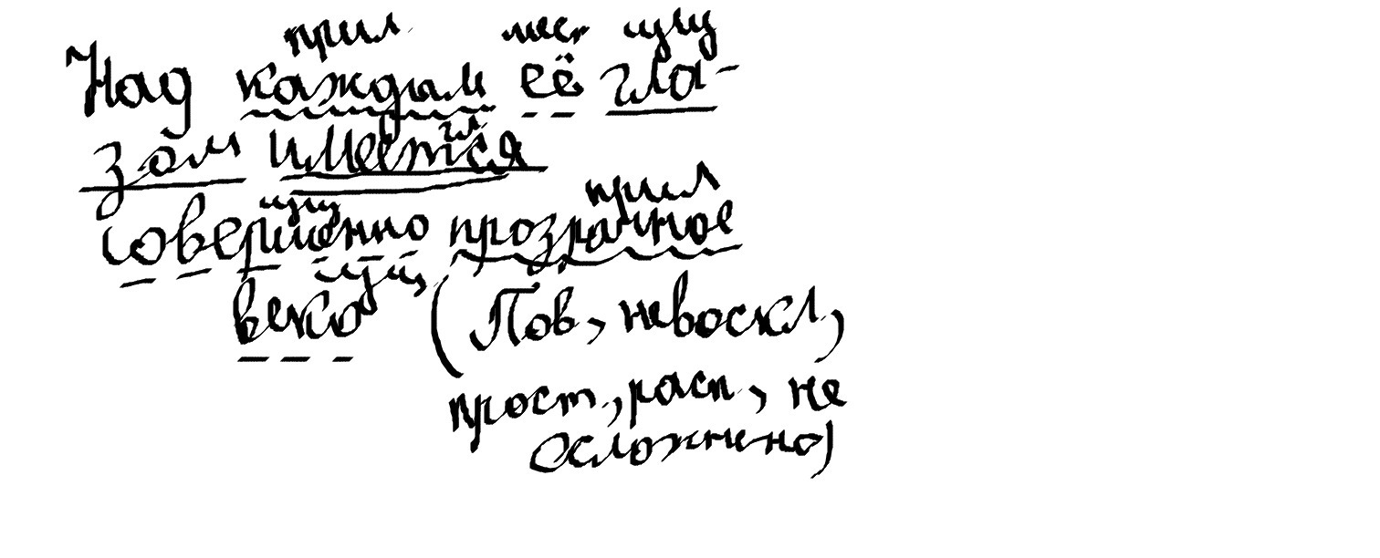 Помогите пожалуйста! Морфологический разбор предложения: Над каждым её глазом имеется совершенно прозрачное веко .