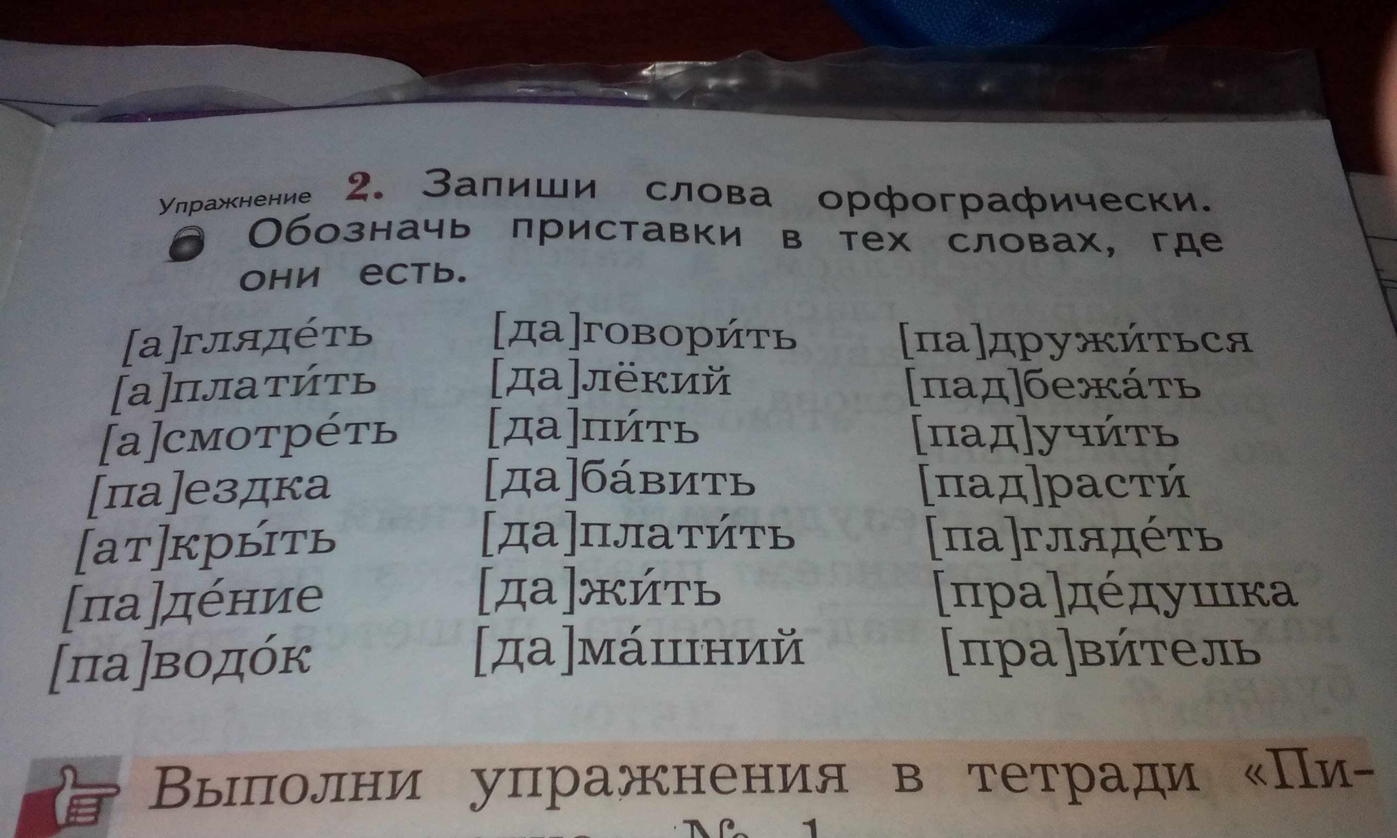 Оглядеть, осмотреть,оплатить,поездка,оплатить,падение,повадок,договорить,далекий,допить,добавить,доплатить, дожить ,домашний,подружиться, подбежать,подучить,подрасти,поглядеть,прадедушка,правитель.