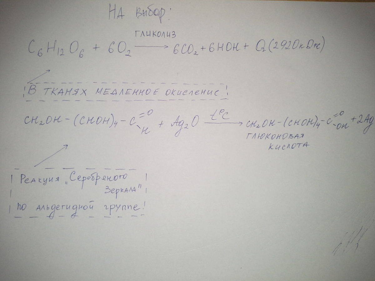 Реакция полного окисления: С6H1206 +602+38АДФ +38H3PO4 = 6CO2+6HOH +38 мольекул Аденозинтрифосфата