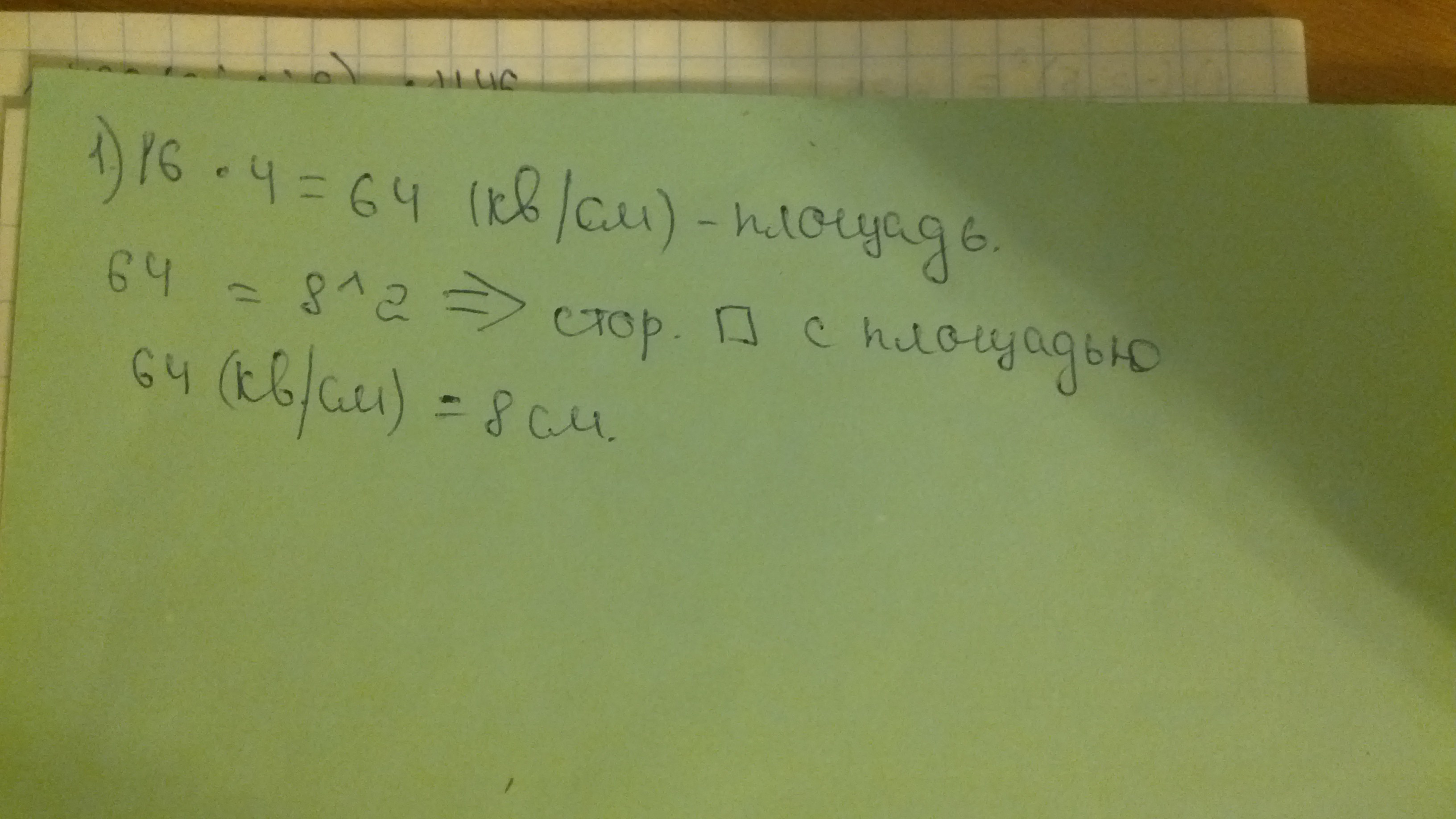 Соответственно, сторона квадрата с площадью 64кв.см. равна 8 сантиметрам.