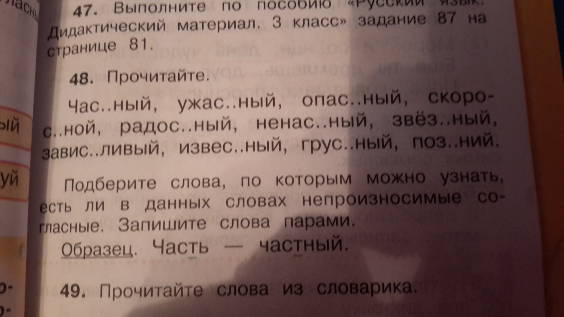 Частный -часть, ужастный - ужасть,
