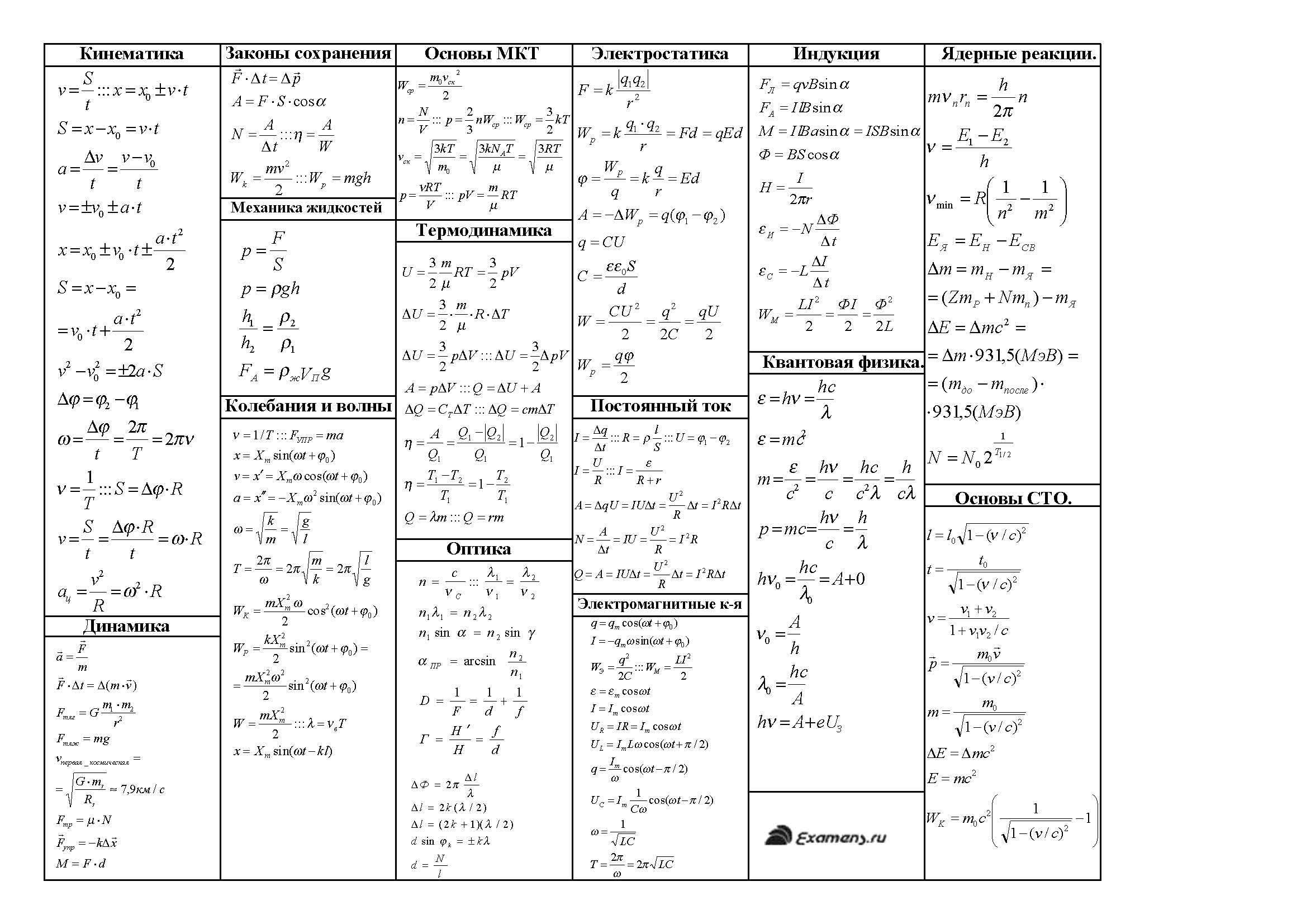 Вот тебе формулы по физике