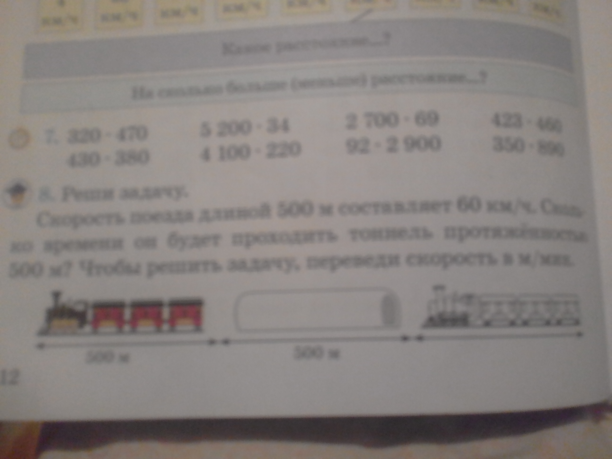 Помогите решить: " Скорость поезда длинной 500 м. составляет 60 кмч. Сколько времени он будет проходить тоннель протяжённостью 500 м? Чтобы решить задачу, переведи скорость в м/мин." Если можно поподробнее!