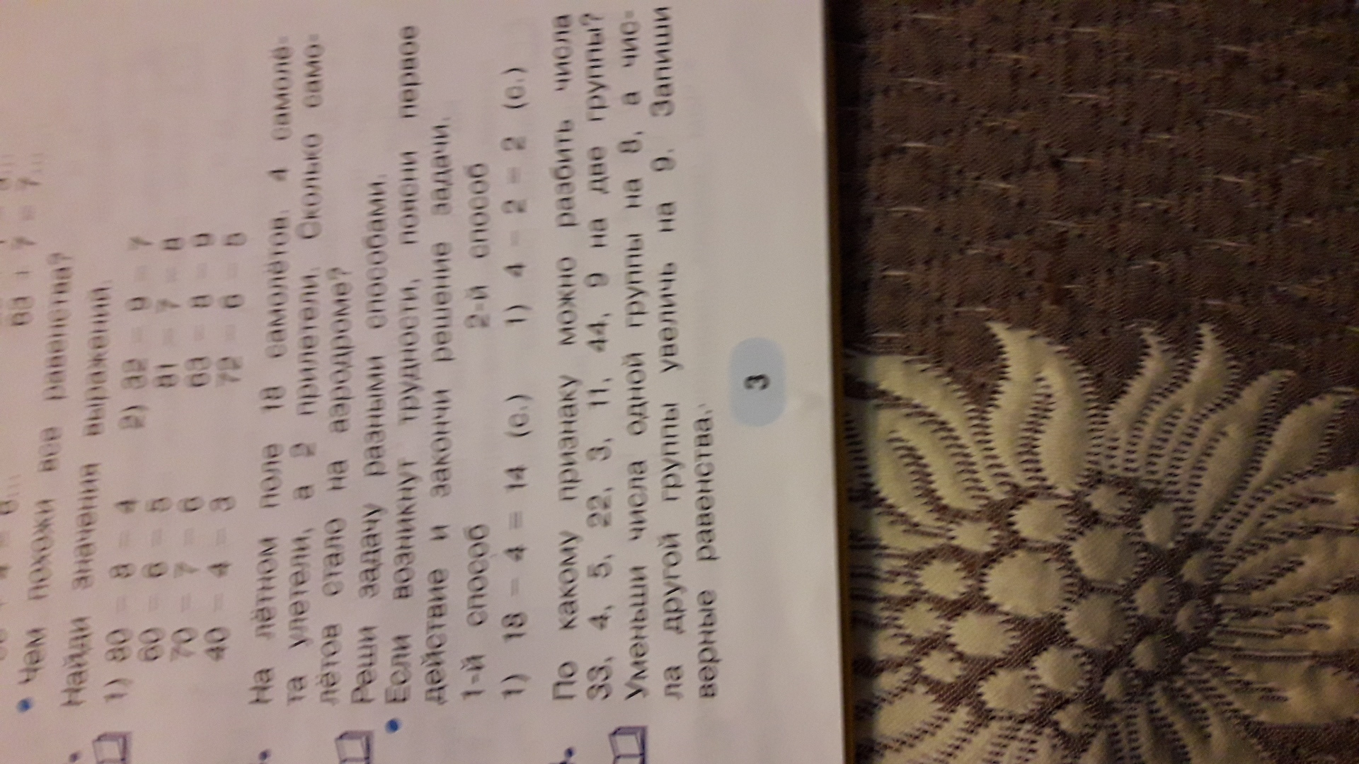 По какому признаку можно разбить числа 33 45 22 23 11 44 90 2 группы уменьшить число 1 группы на 8 от числа другой группы увеличена 9 Запиши верные равенства