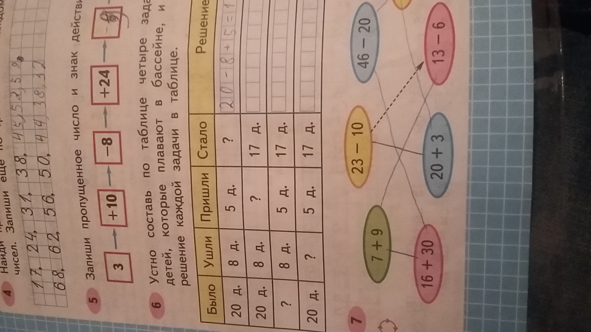 устно составть по таблице четыре задачи про детей которые плавают в бассейне и запиши решение каждой задачи в таблице